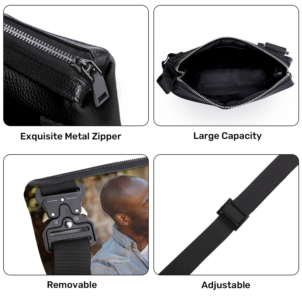 Add to your bag collection this Personalized Men Cross Body - strong style and personality. This bag is made of durable Pu leather with a convenient pocket and zipper design to help you carry small items. You can use this bag to go out, go on dates or anywhere. It is also a great gift for your lover, father or grandfather...
