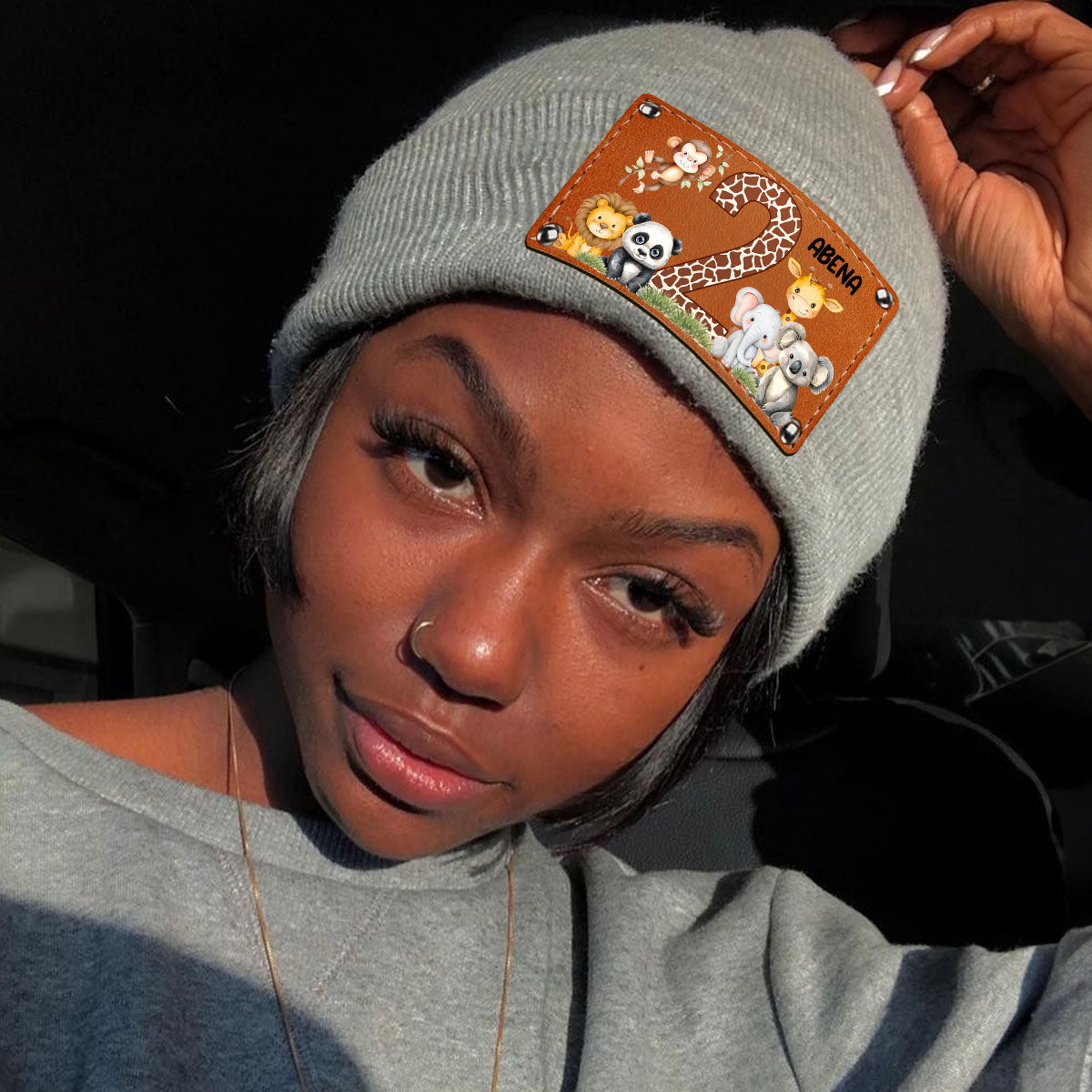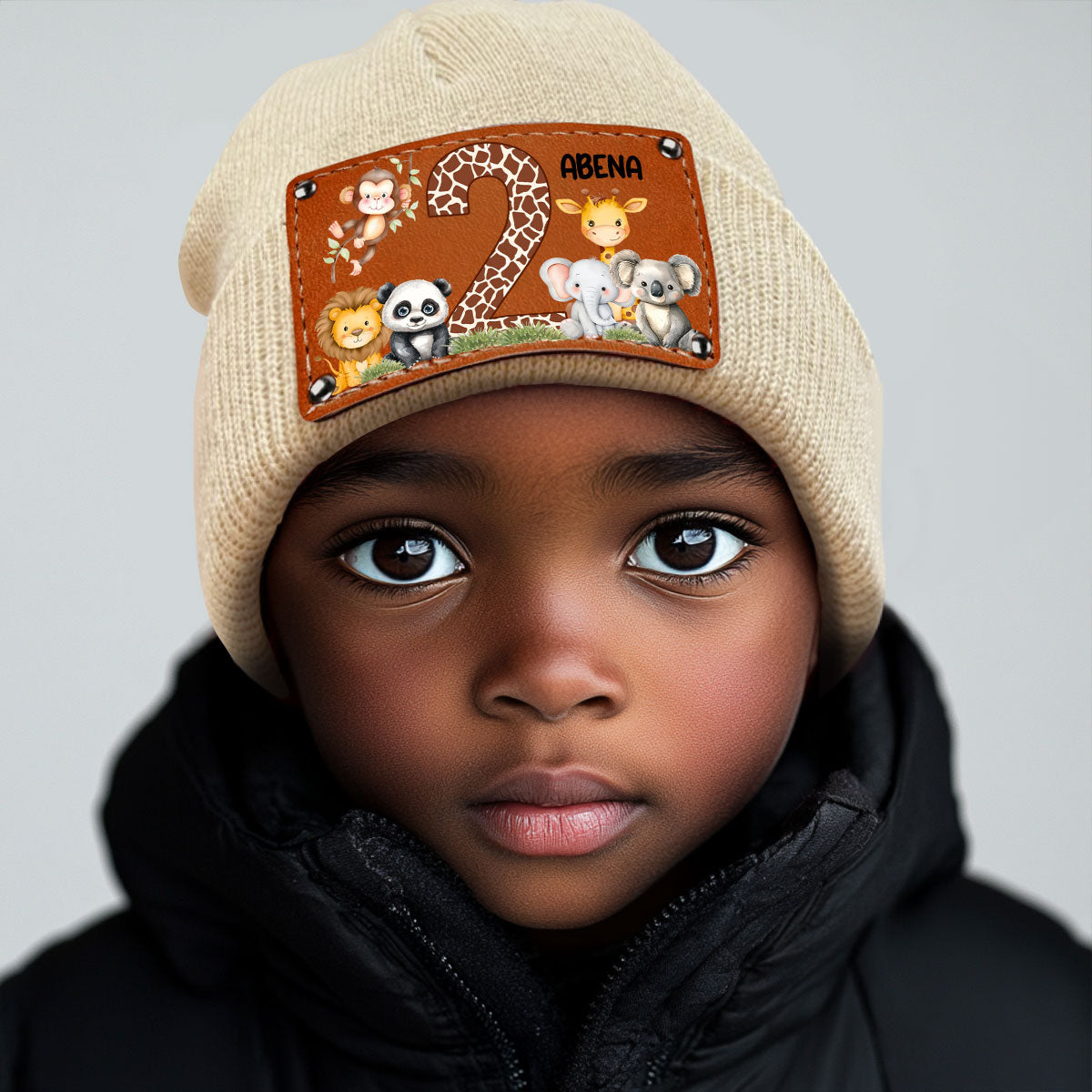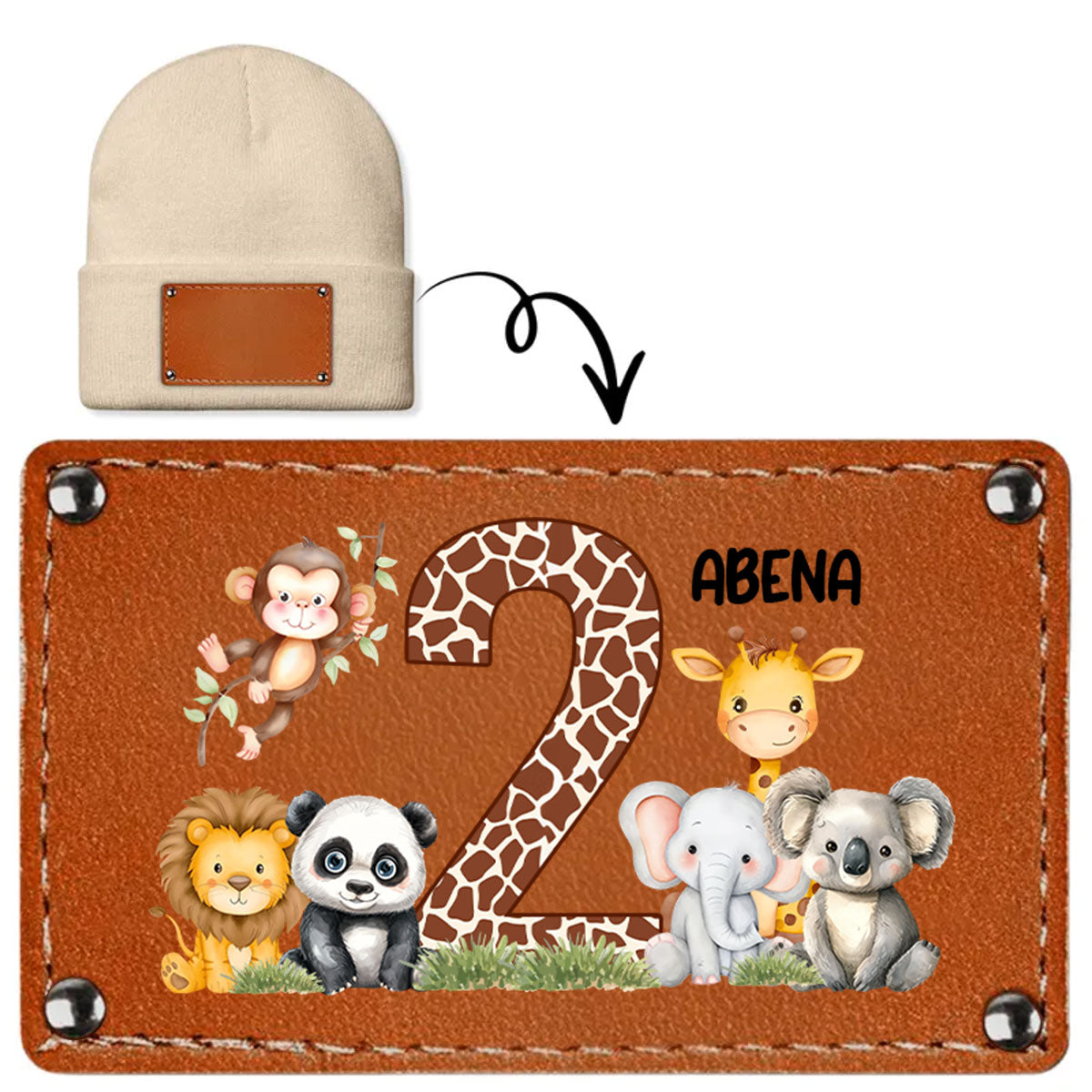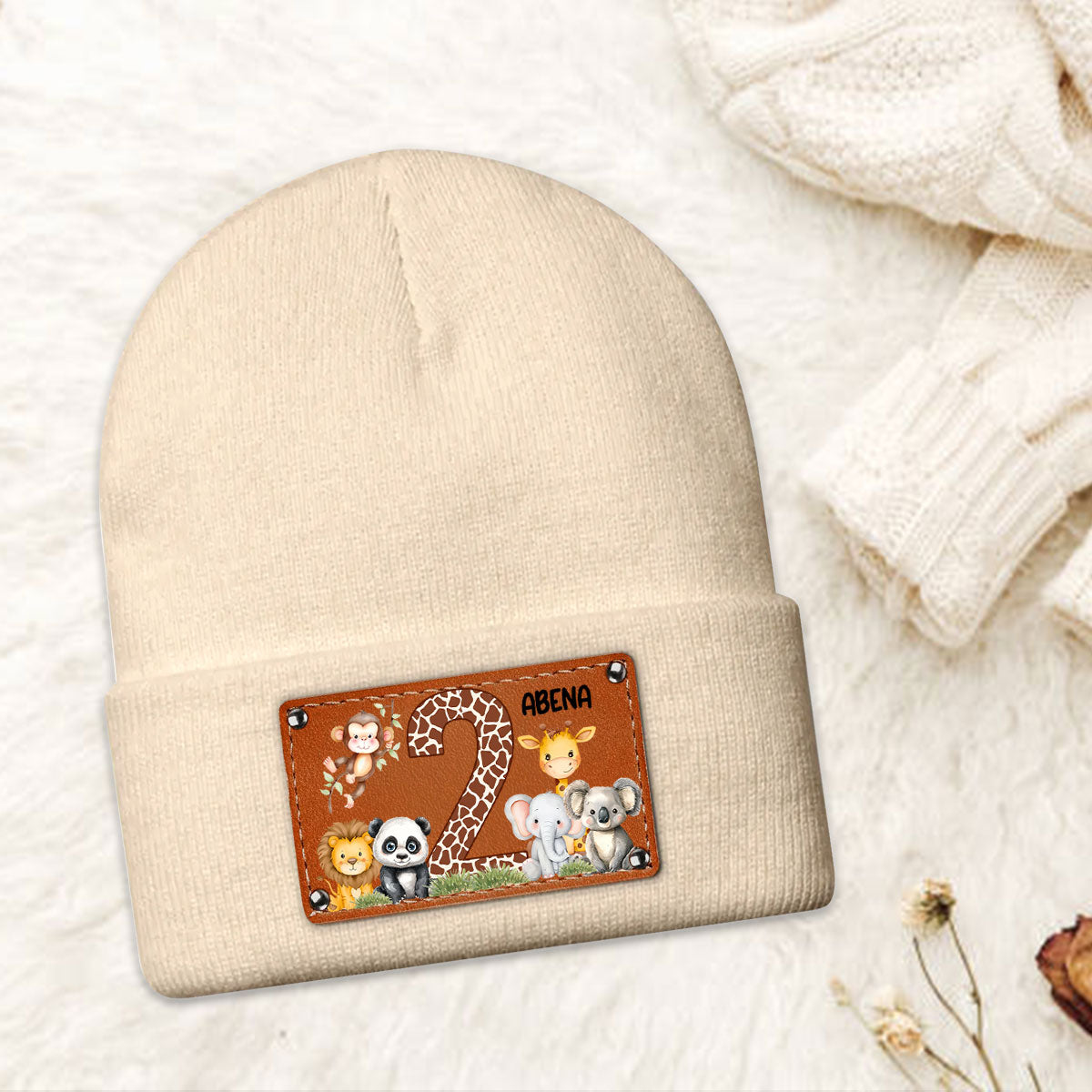 Cute Jungle Animal Age - Personalized Leather Knitted Beanie SBLKBLM2211TA