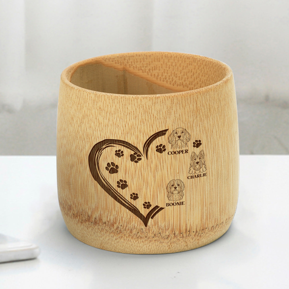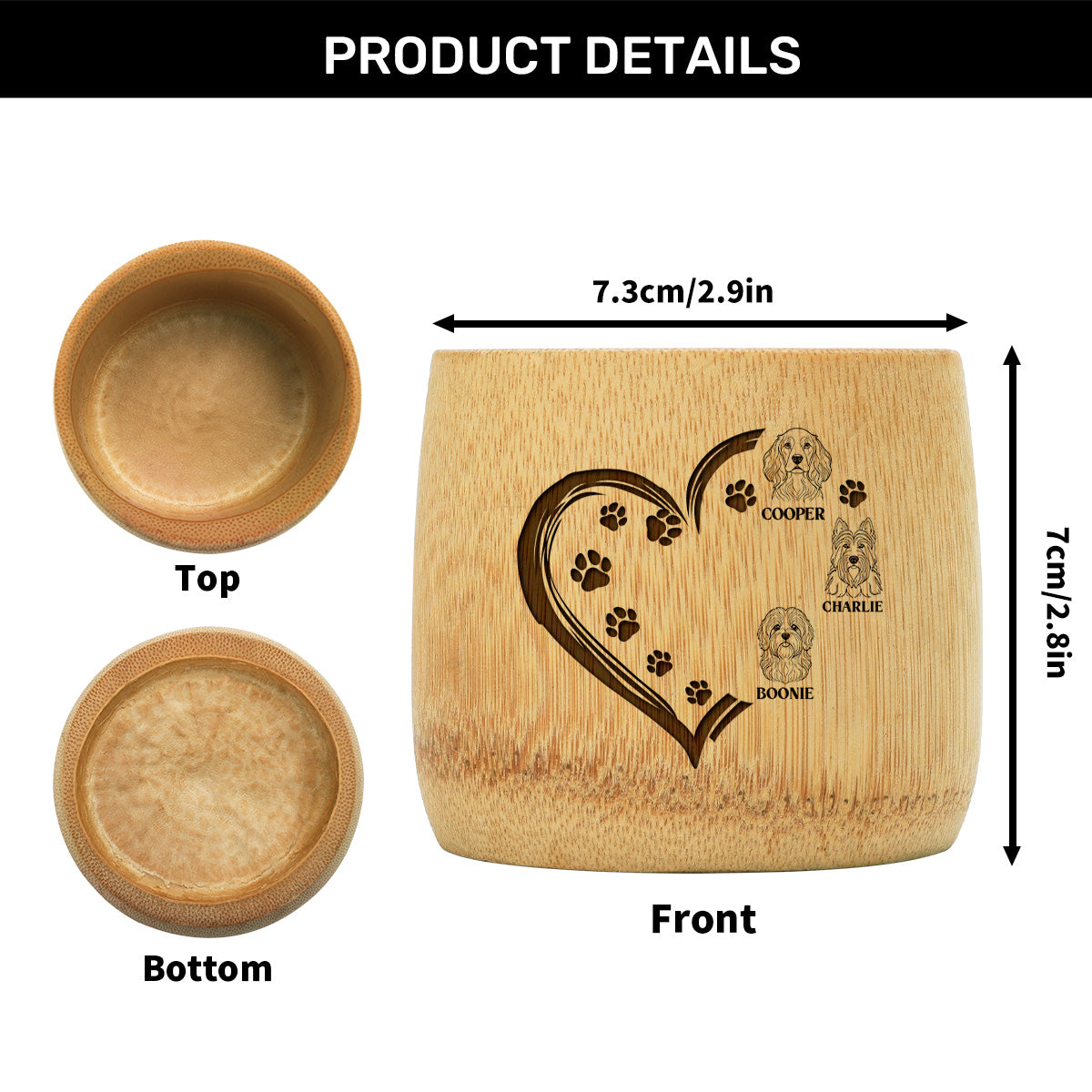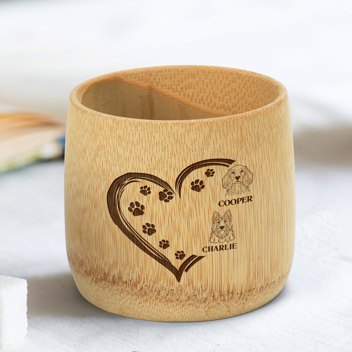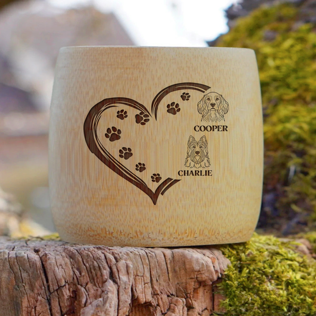 Dog Heart Paw Prints - Personalized Bamboo Cup
