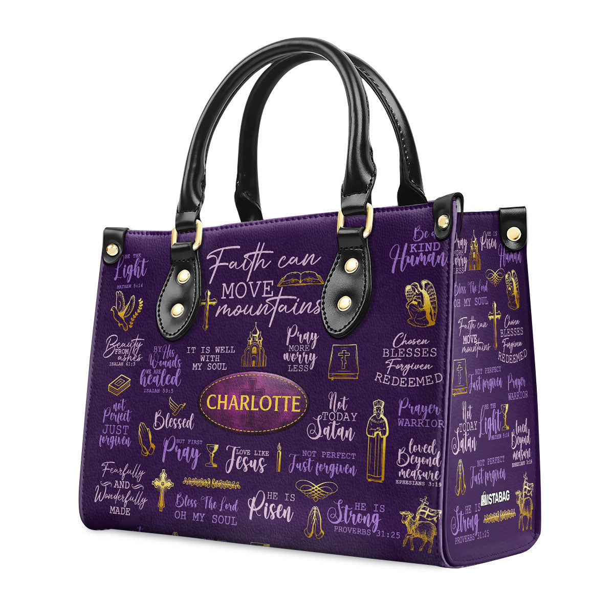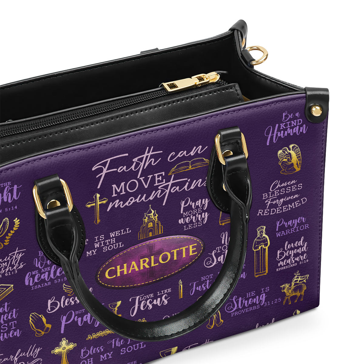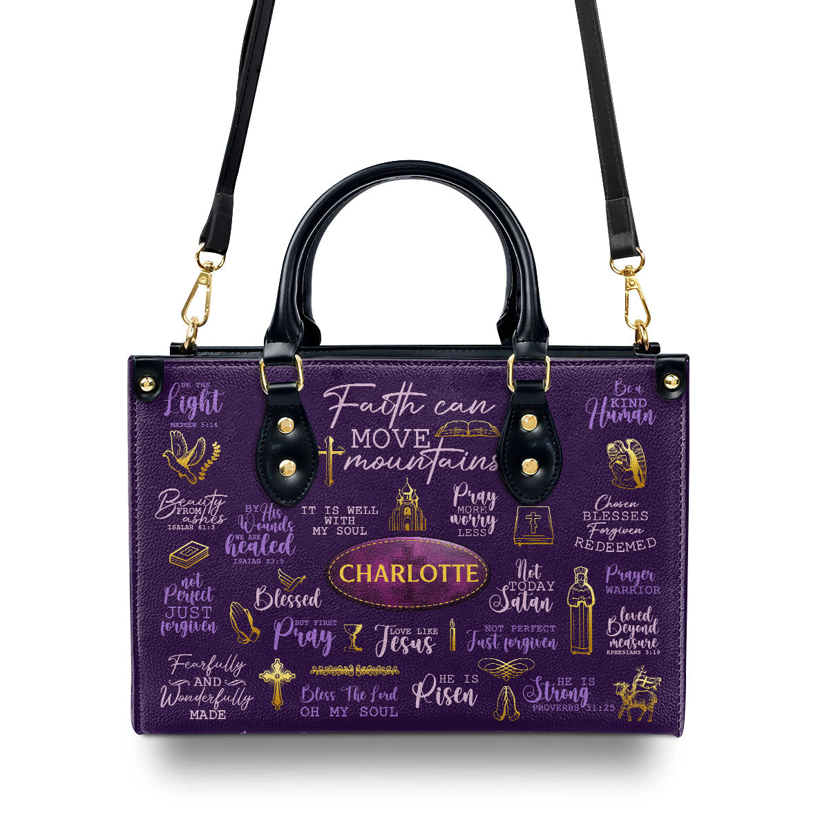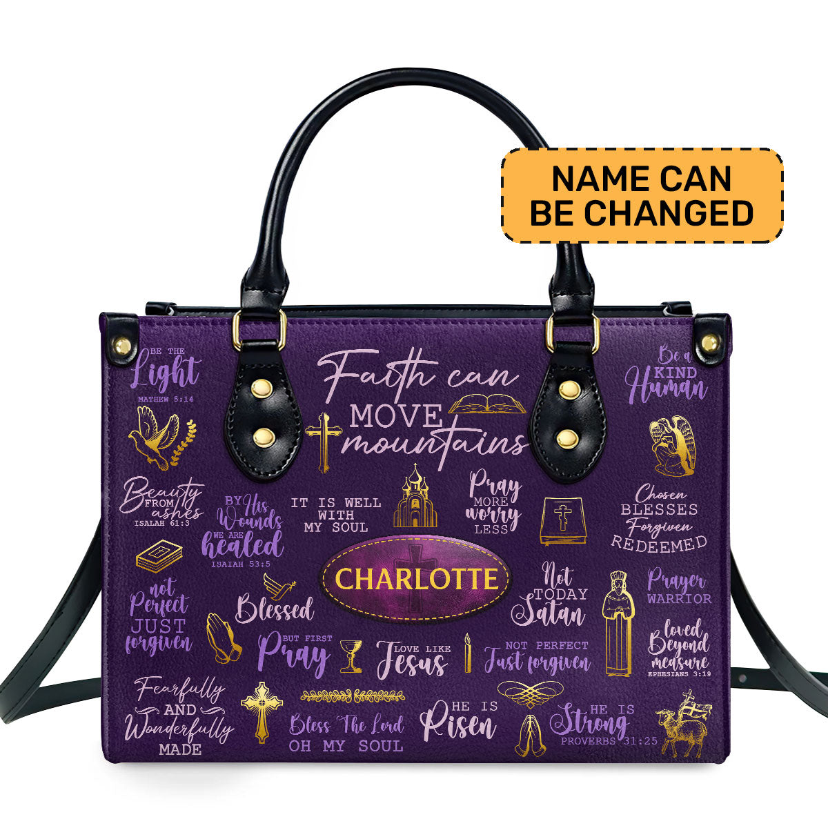 Faith Can Move Mountains - Personalized Leather Handbag SBLHBT84