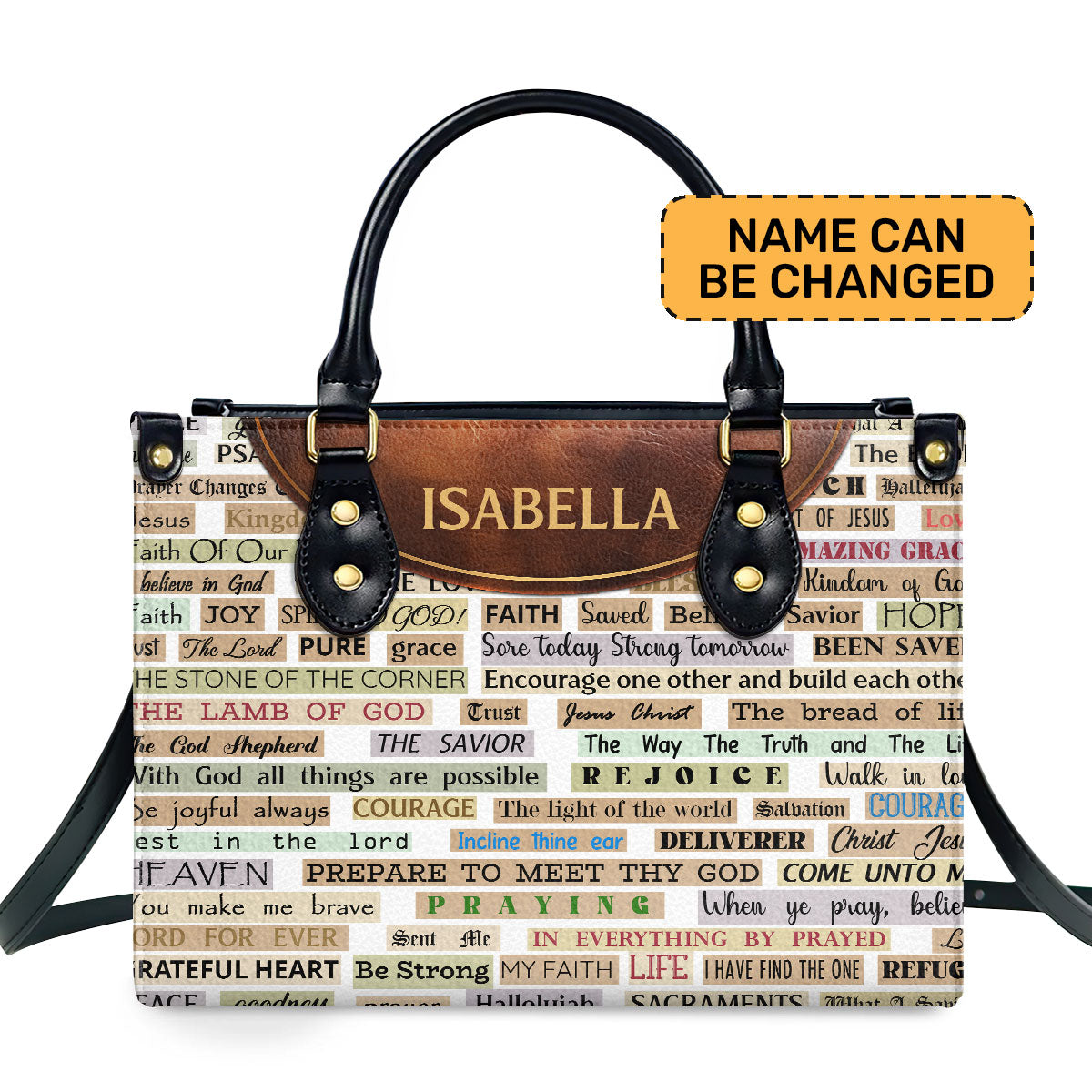 Faith Text - Personalized Leather Hand Bag SBLHBPT771T