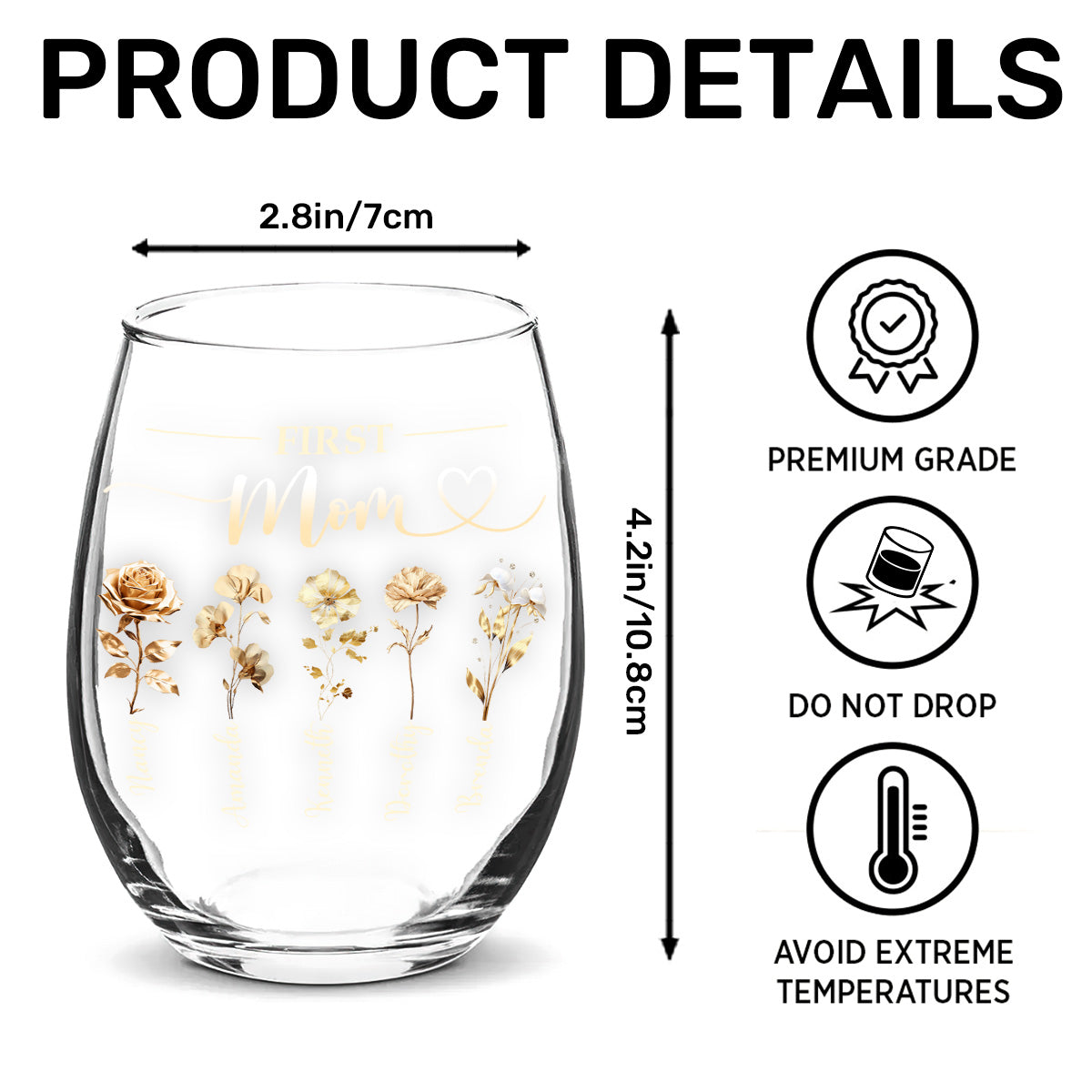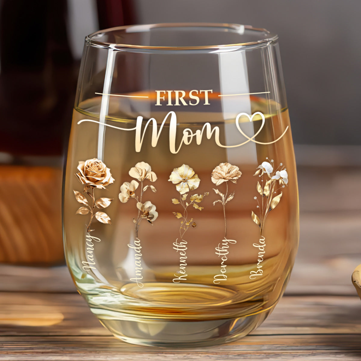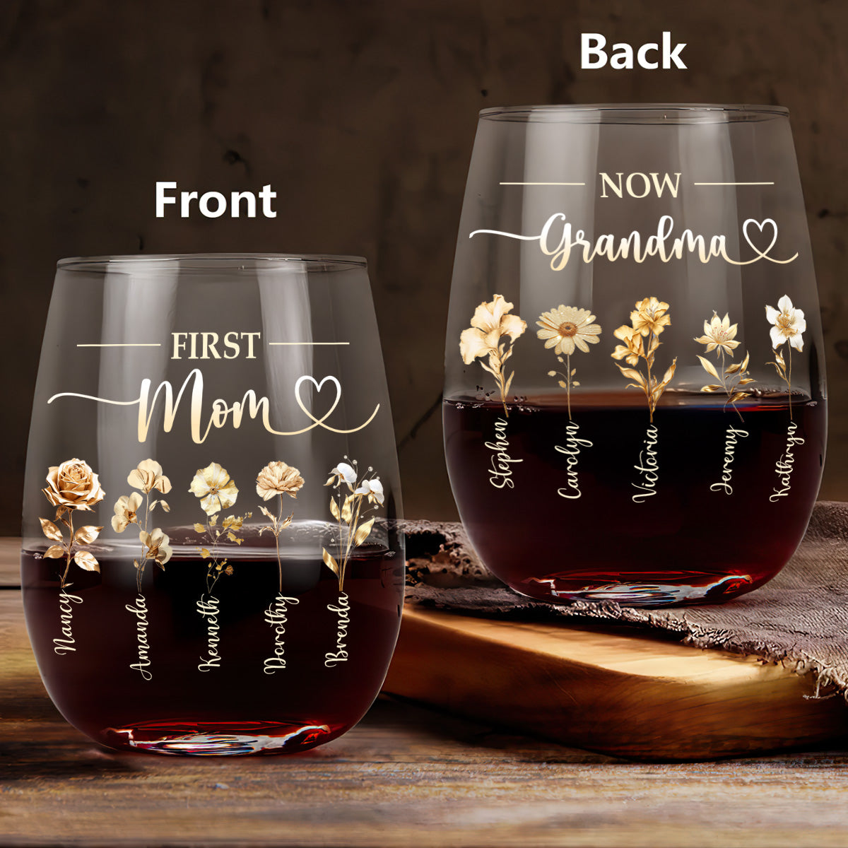 First Mom Now Grandma - Personalized Stemless Wine Glass