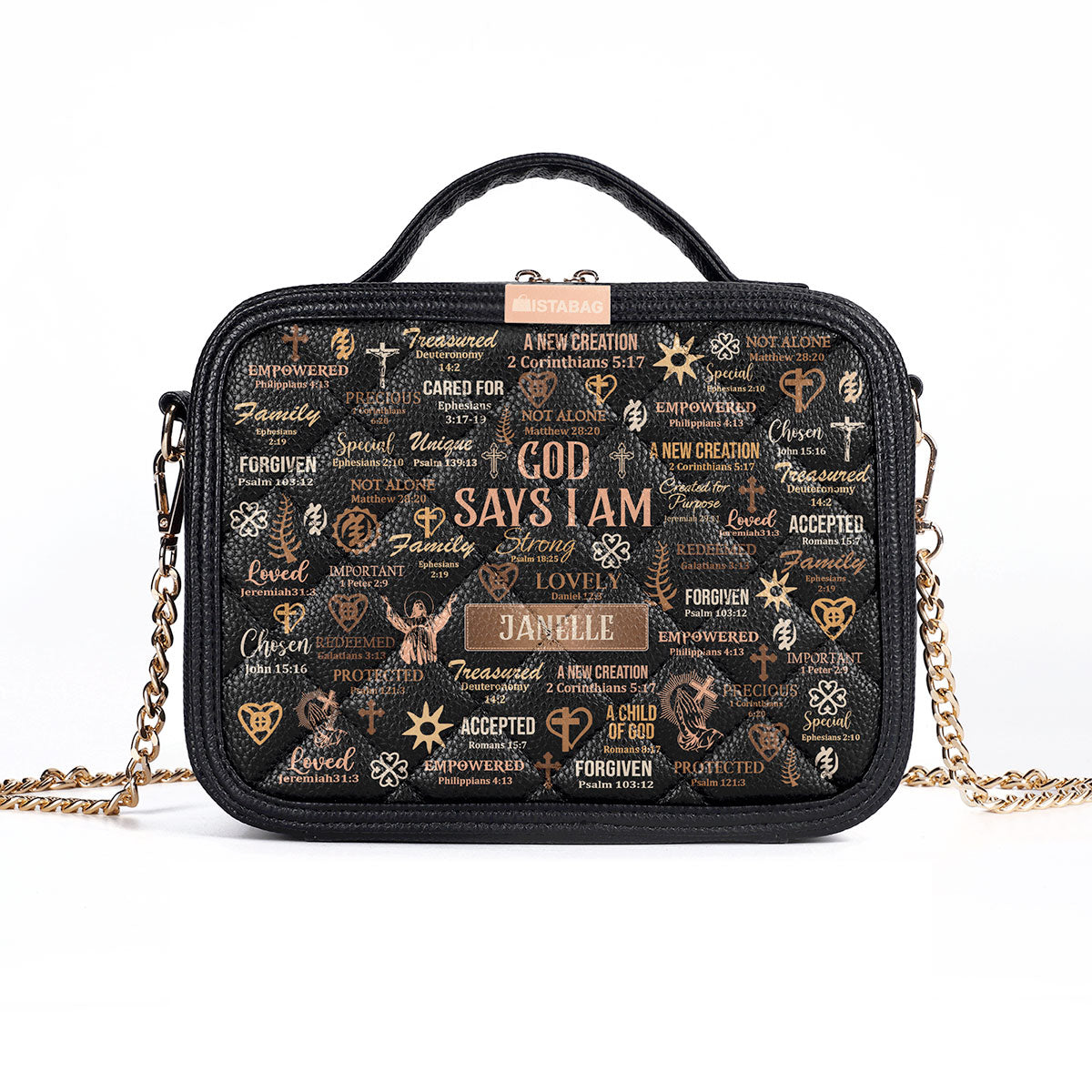 God Says I Am - Personalized Diamond Grid Stitching Bag SBDGSBLM1915TA