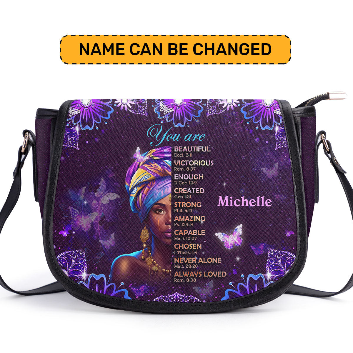 God Says You Are- Personalized Leather Saddle Cross Body Bag MB32