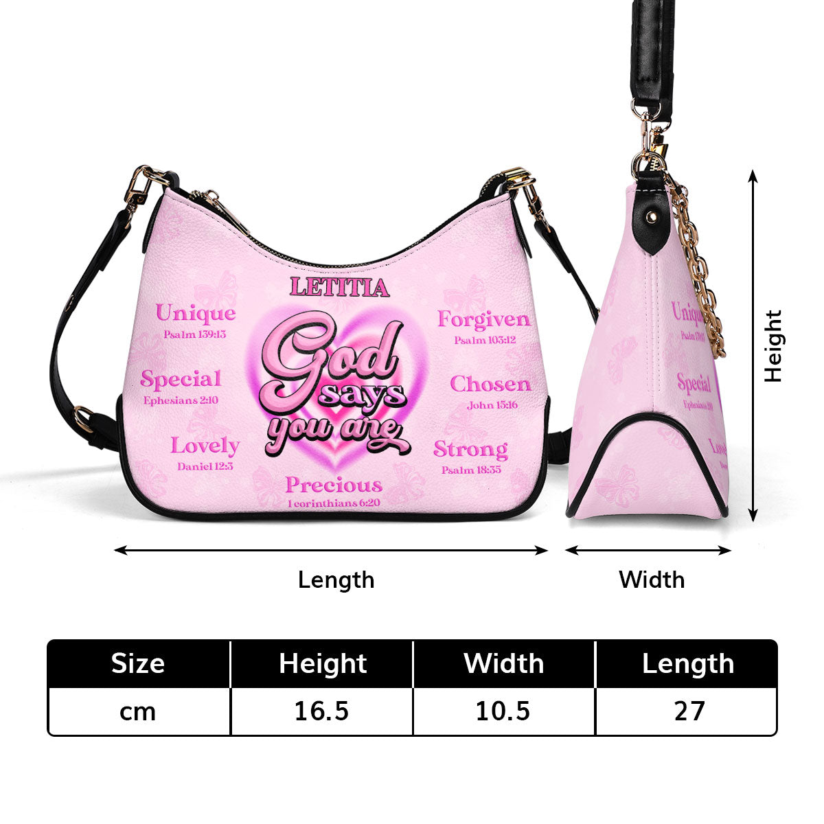 - Personalize your handbag with your name, free of charge.