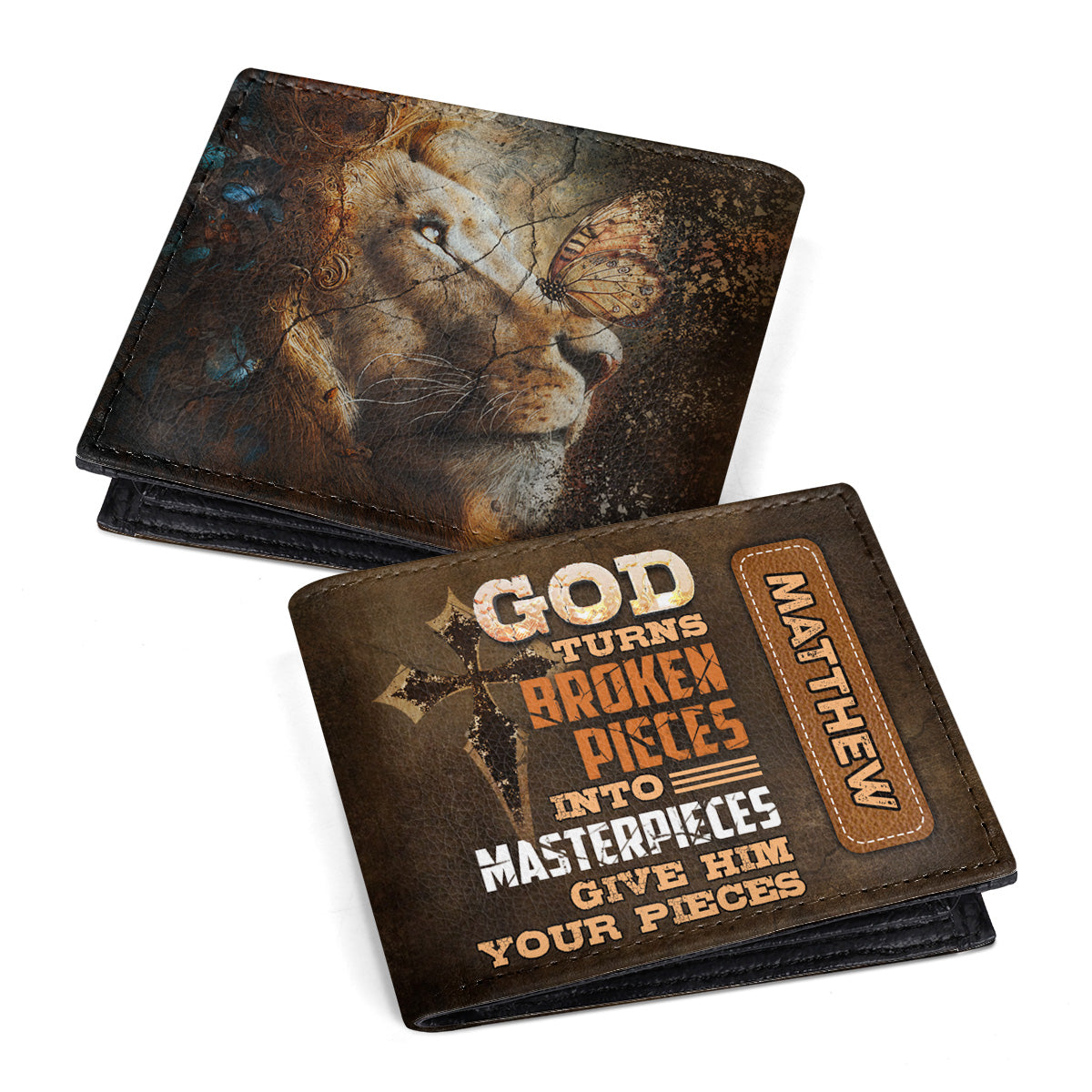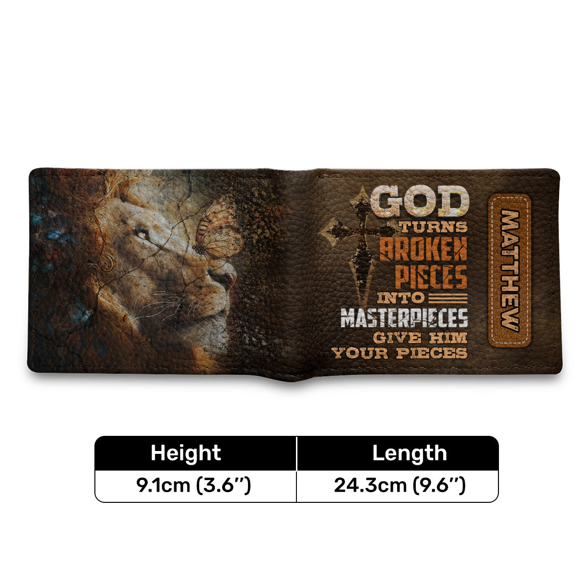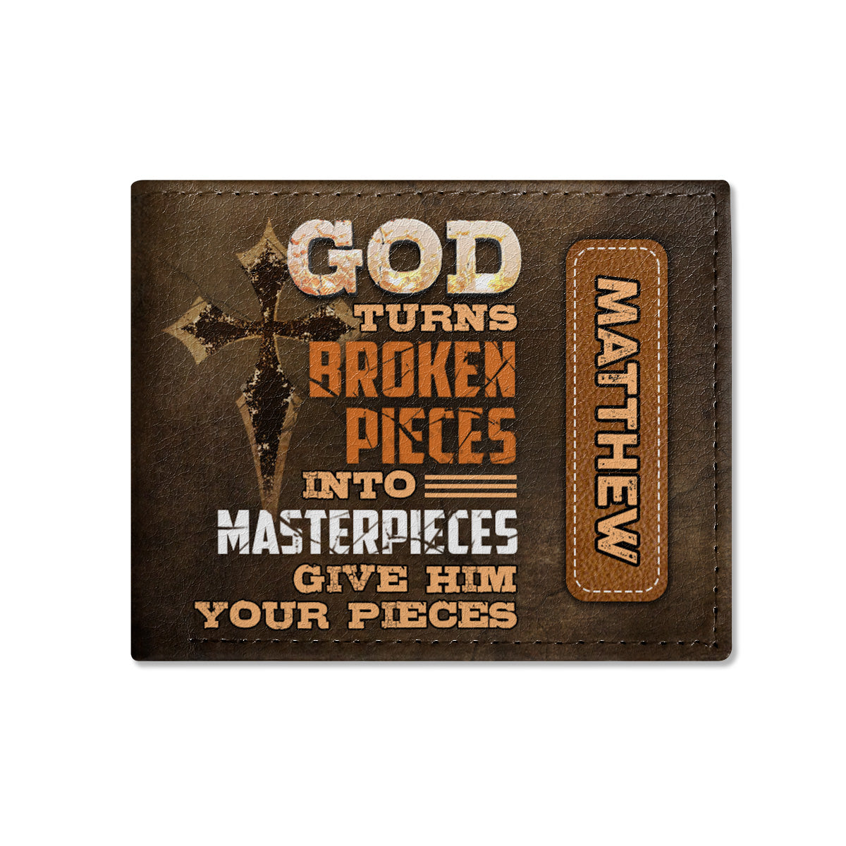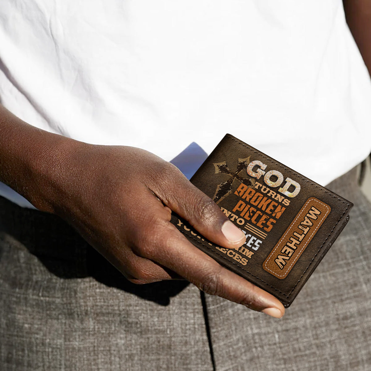 God Turns Broken Pieces Into Masterpieces - Personalized Leather Folded Wallet SBLFWLTU2732D