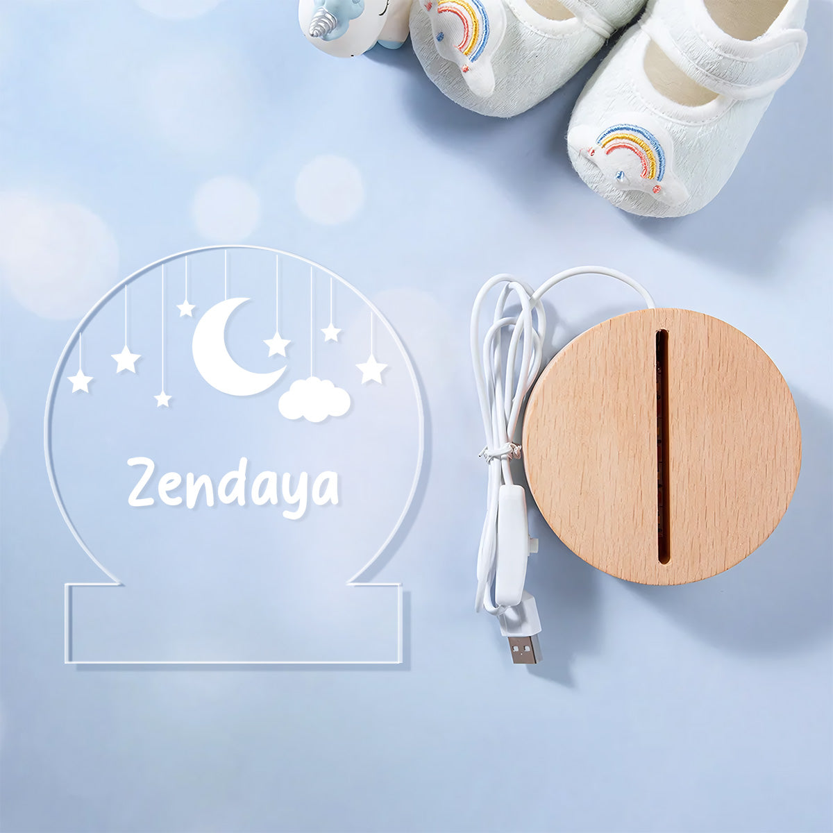 - USB Acrylic Warm Lights: Our night lamp is powered by a USB cable. You can connect the USB cable to the adapter or PC. Acrylic night light is portable, simple and safe to use.
