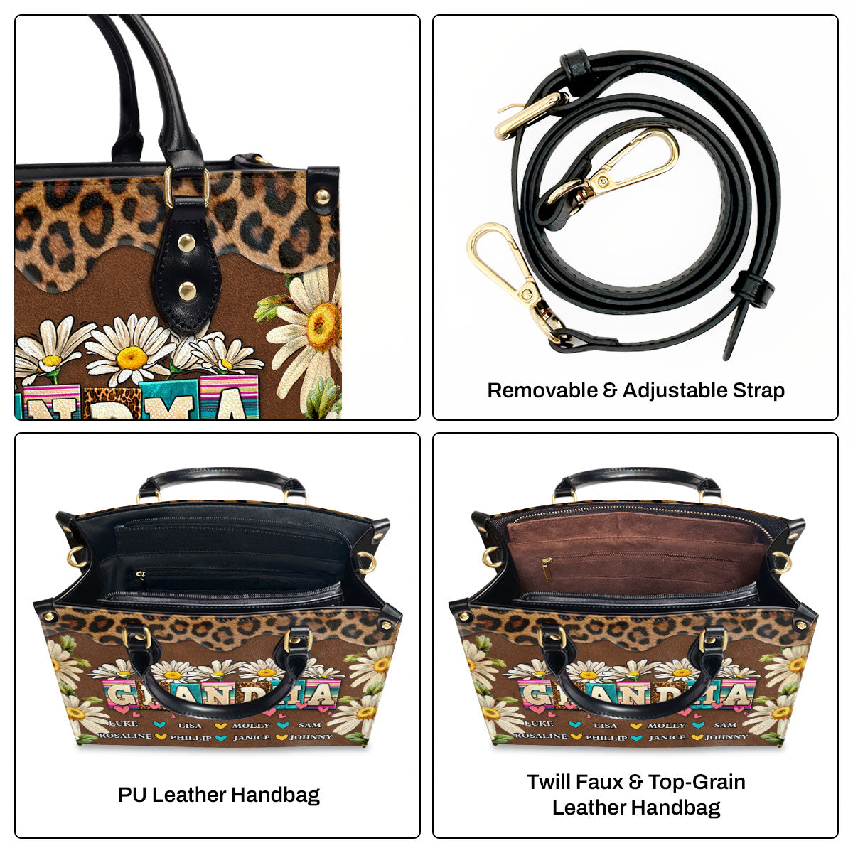Grandma Daisy - Personalized Leather Handbag SBLHBLHA1486L
