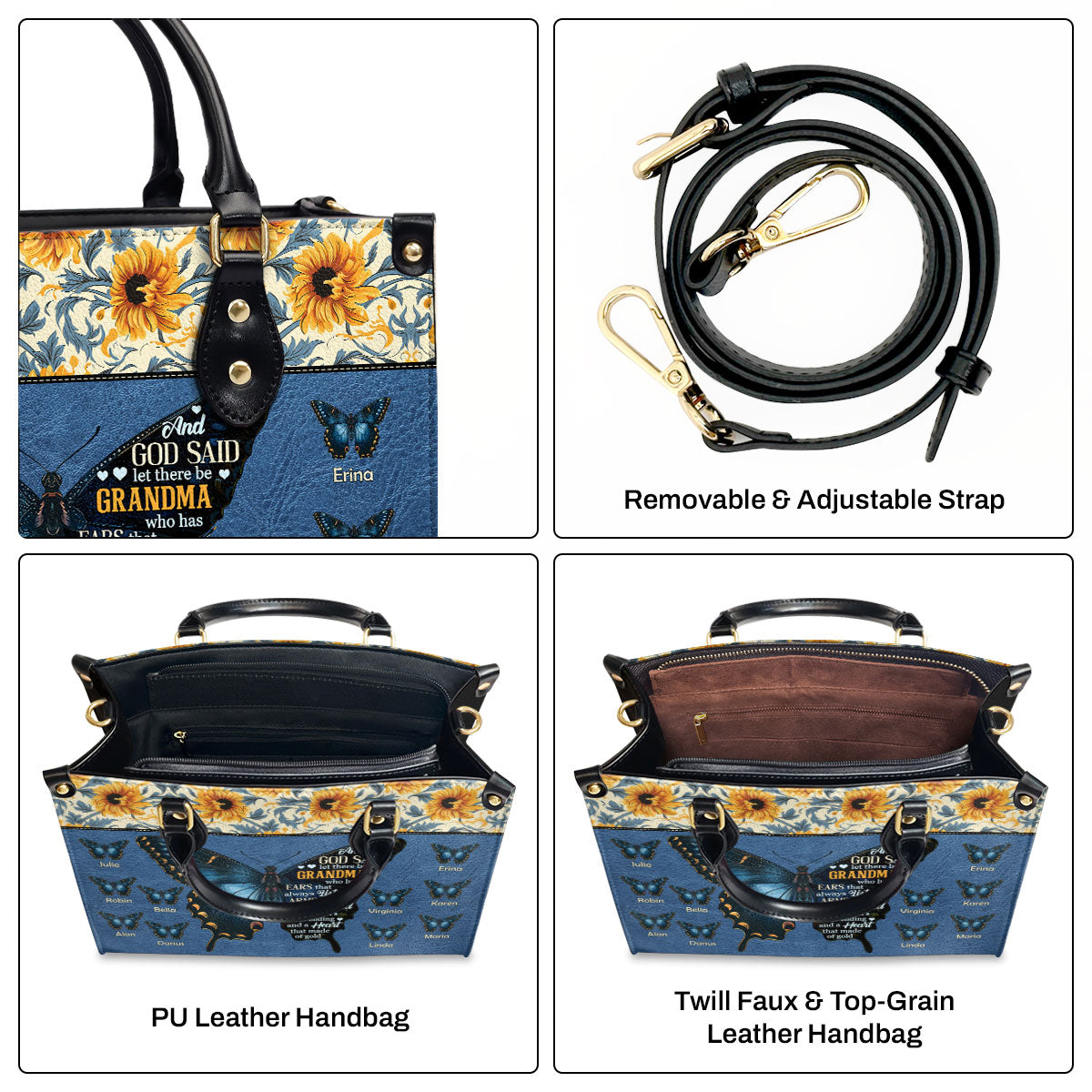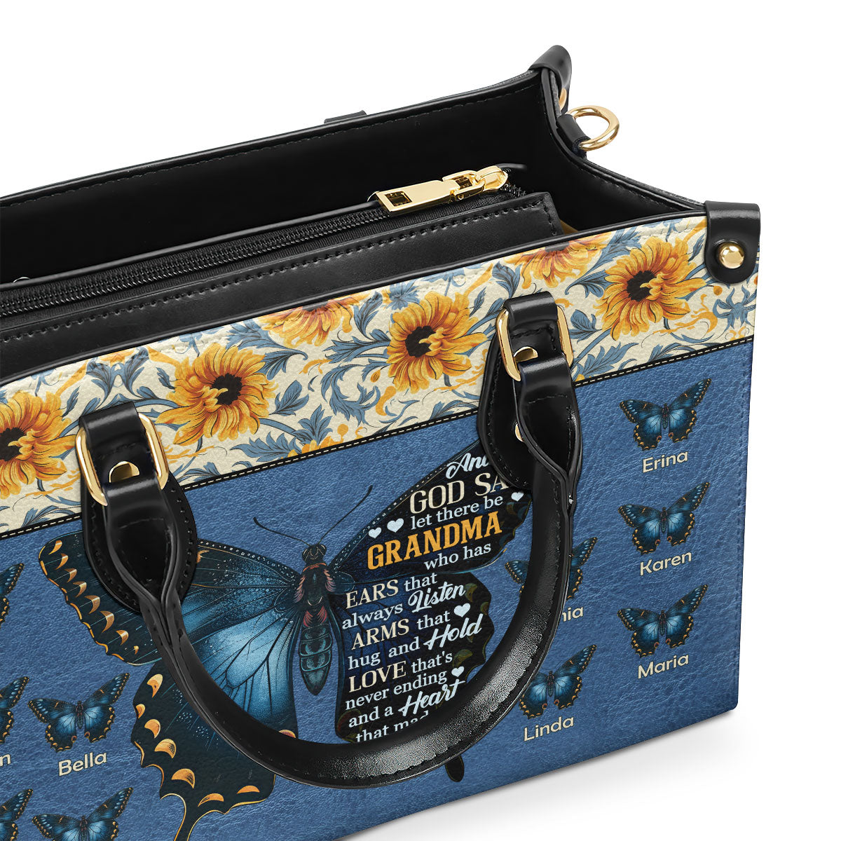 Grandma Heart That Made Of Gold - Personalized Leather Handbag SBLHBLM846M