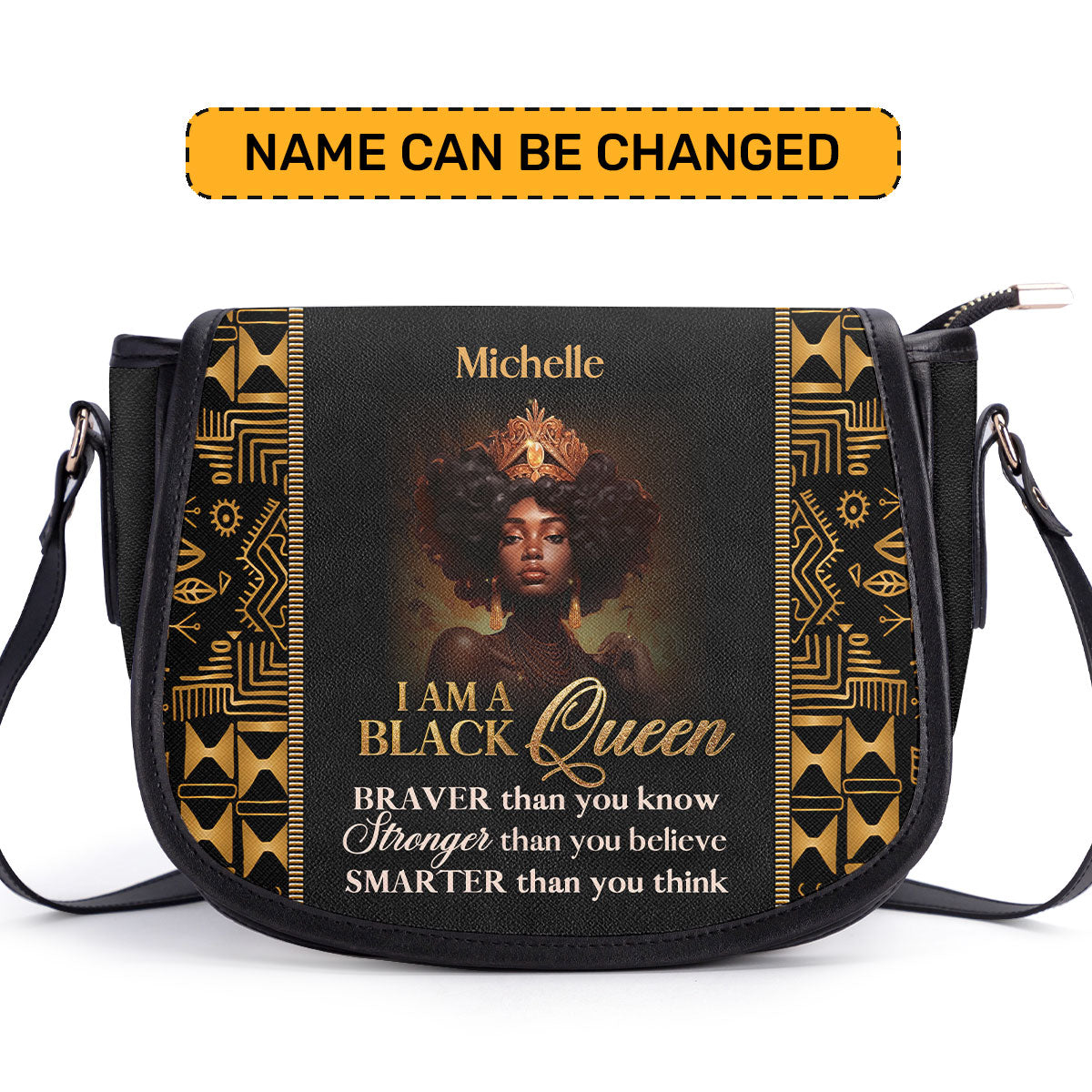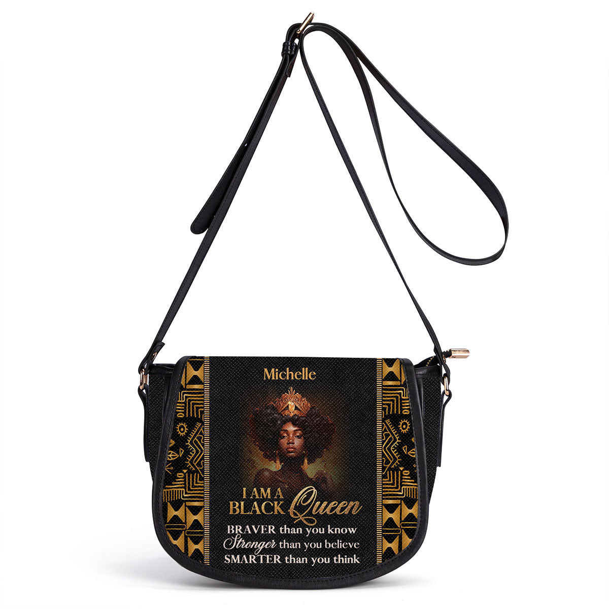 I Am A Black Queen- Personalized Leather Saddle Cross Body Bag MB30