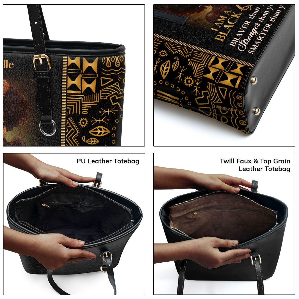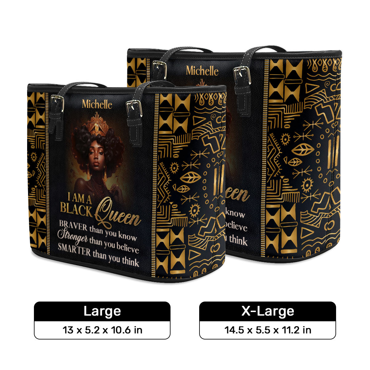 I Am A Black Queen - Personalized Leather Totebag MB30