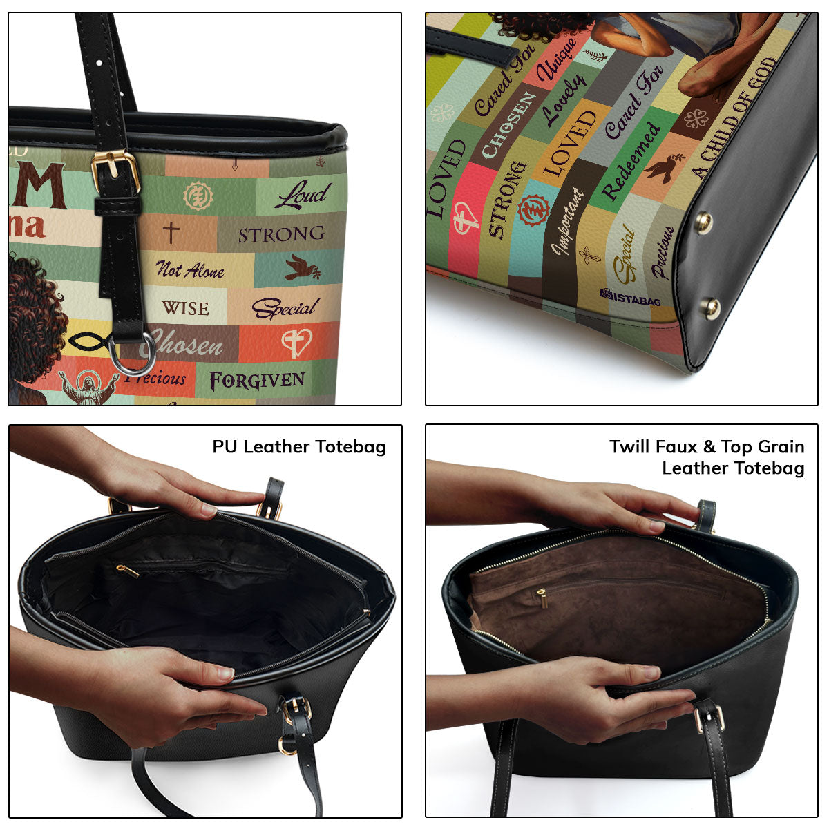 Introducing Sistabag's Leather Totebag - where style meets empowerment. Our totebags celebrate the spirit of Black women with diverse design themes and inspirational quotes. Carry your pride, embrace your beauty, and make a powerful statement with Sistabag.