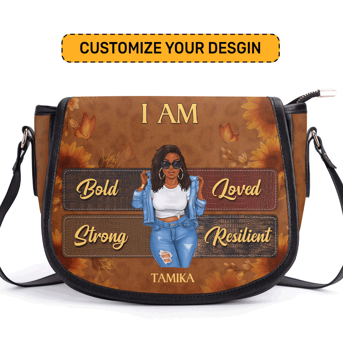 I Am - Personalized Leather Saddle Cross Body Bag STB03