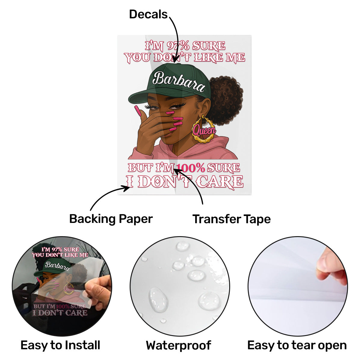- Premium Material: made of vinyl material and a crystal clear laminate, this sticker is UV-proof, scratch-proof, waterproof & weather resistant. They are 100% non-toxic, making them safe for children, or anyone else. Once applied they look like they are painted on transparent background.