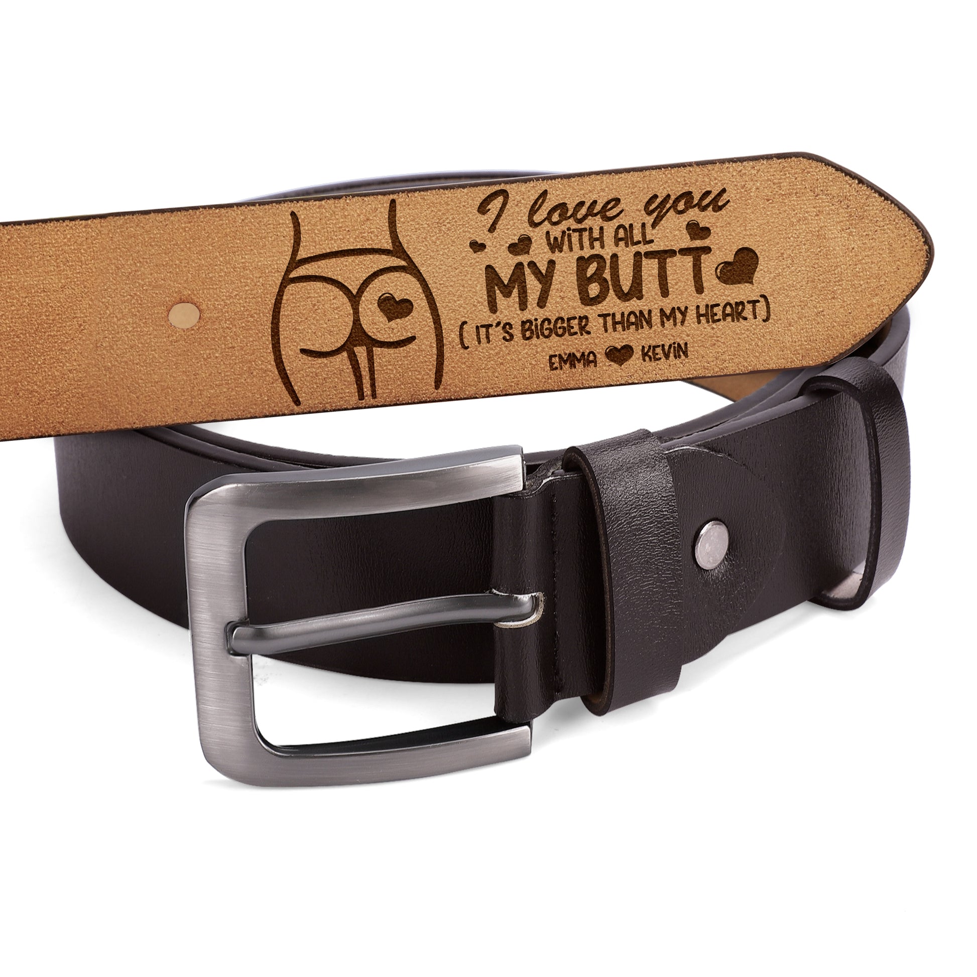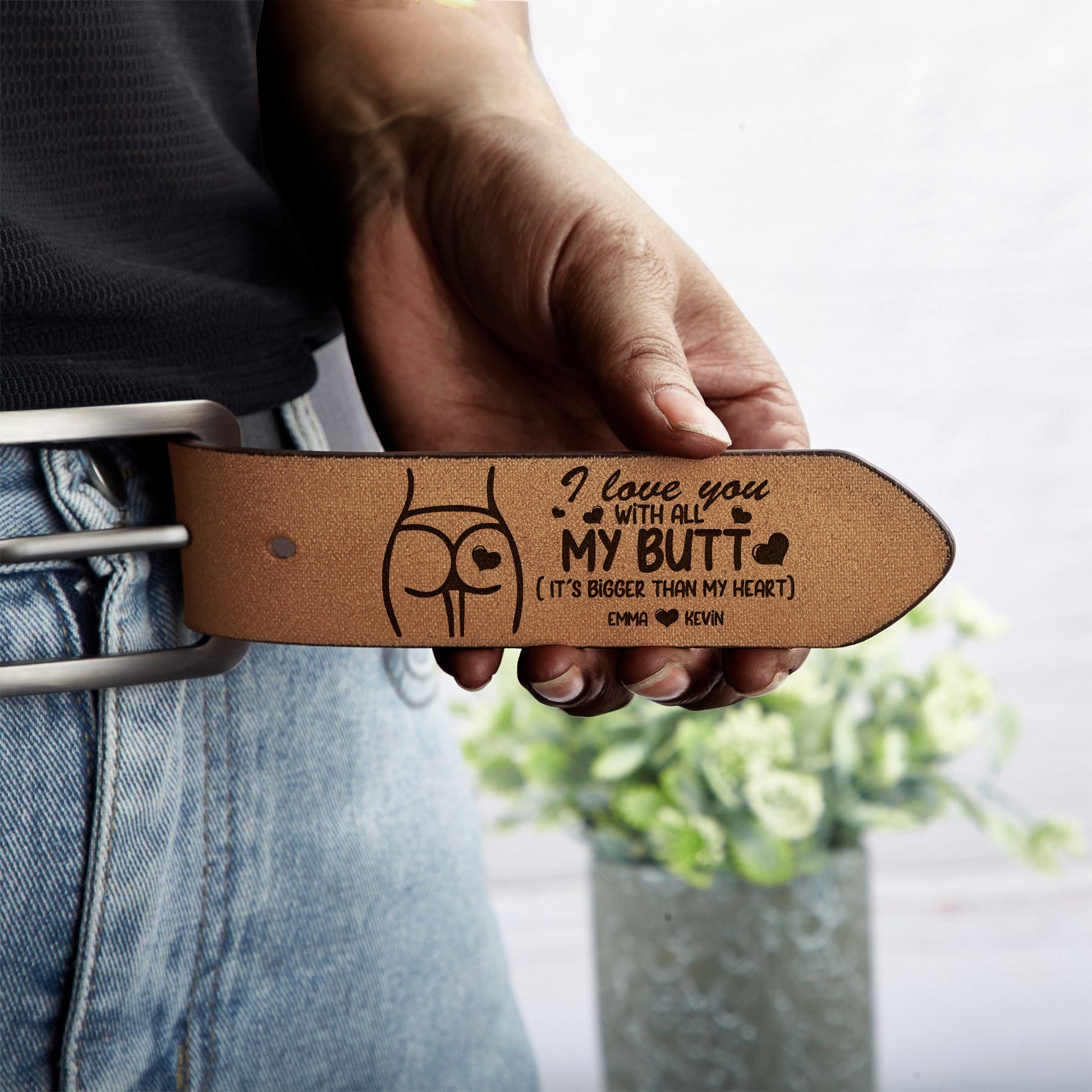 I Love You With All My Butt - Personalized Engraved Leather Belt