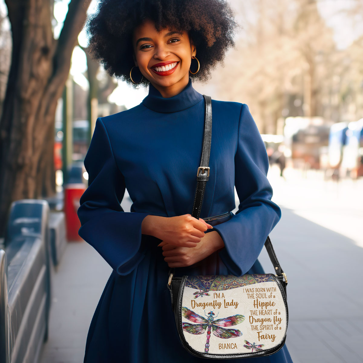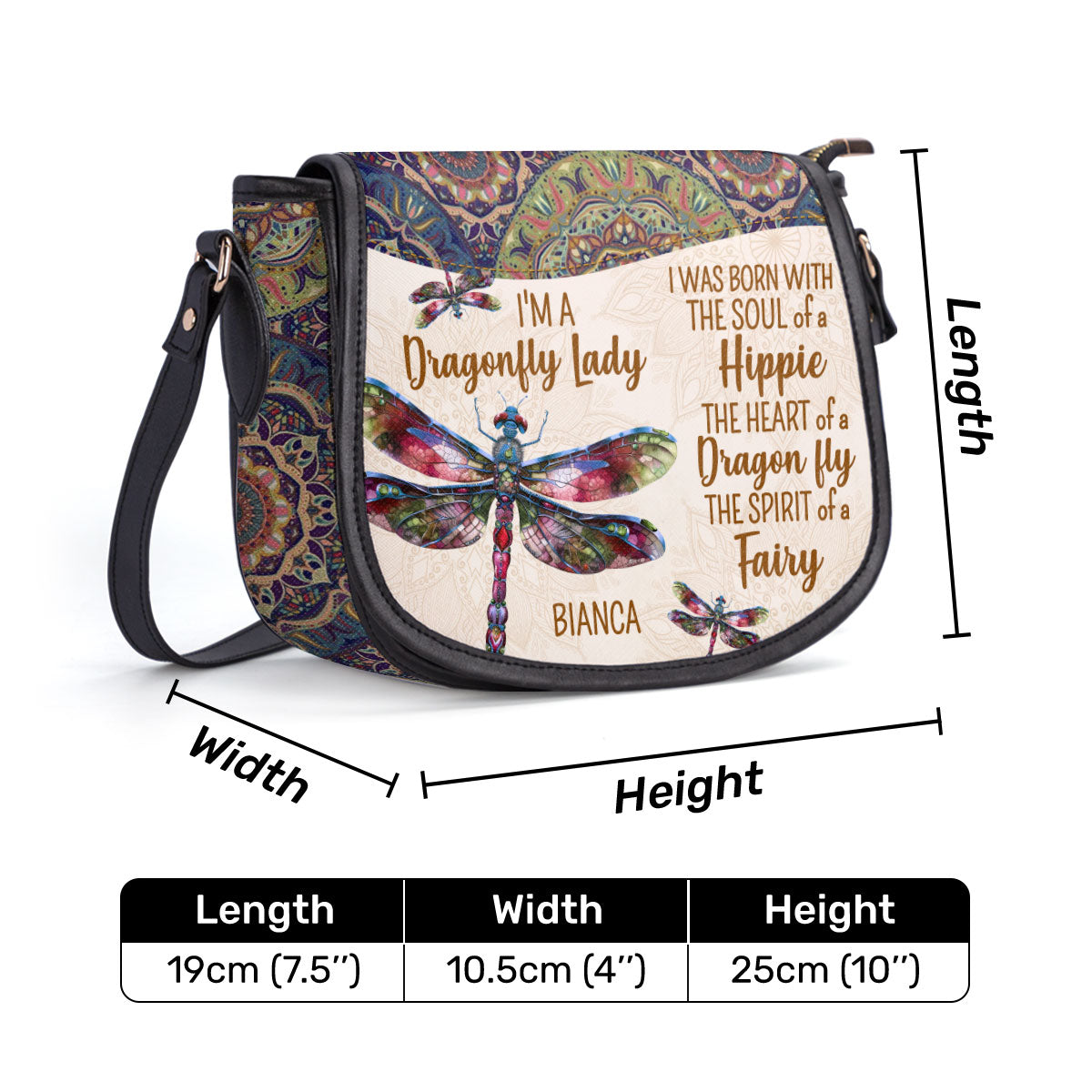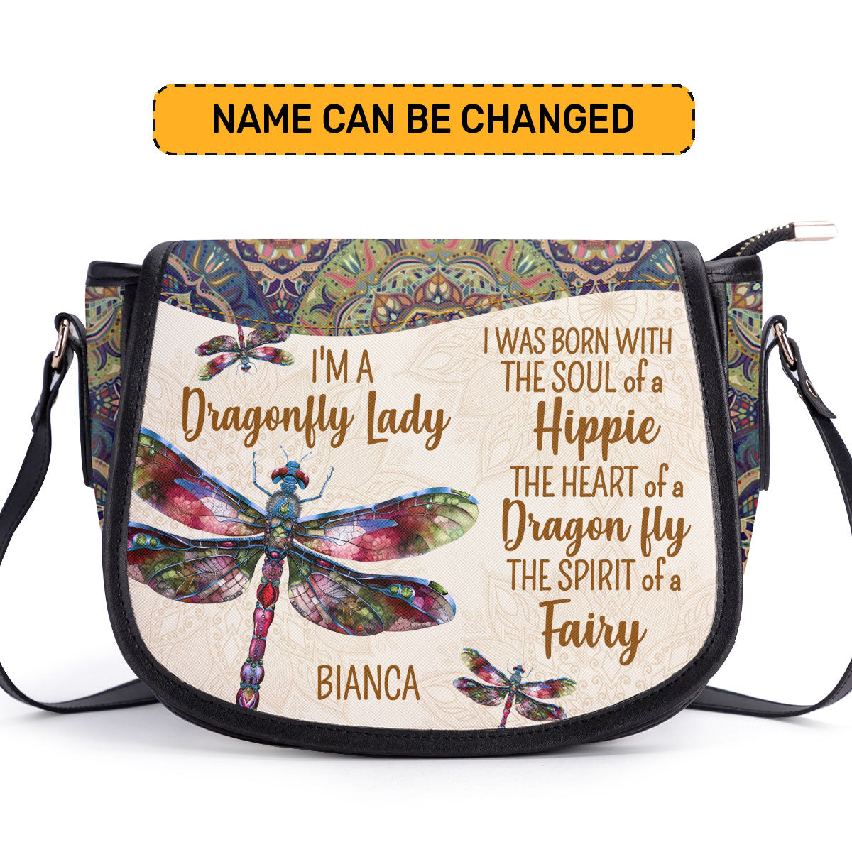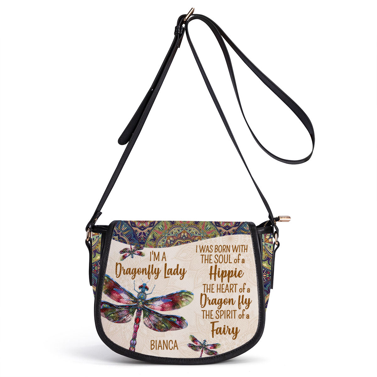 I'm A Dragonfly Lady - Personalized Leather Saddle Cross Body Bag STB223