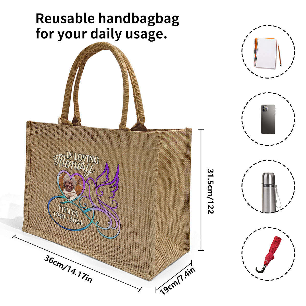 In Loving Memory Dove - Personalized Jute Tote Bag