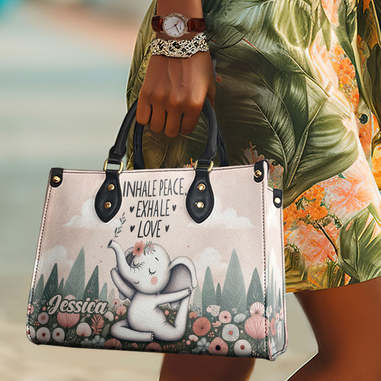 Inhale Peace, Exhale Love - Elephant Personalized Leather Handbag SB838