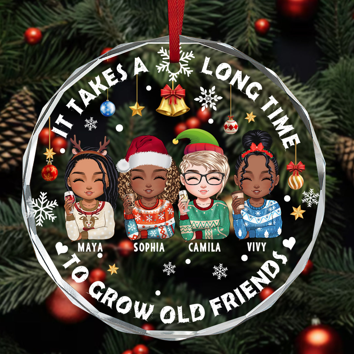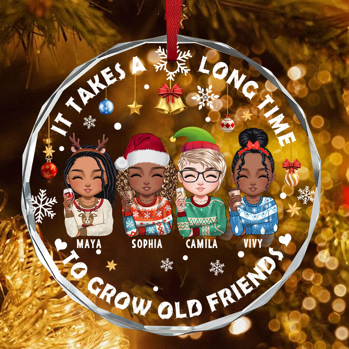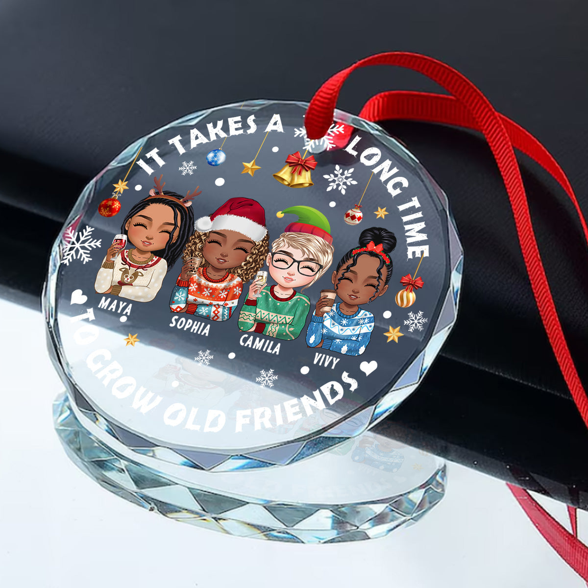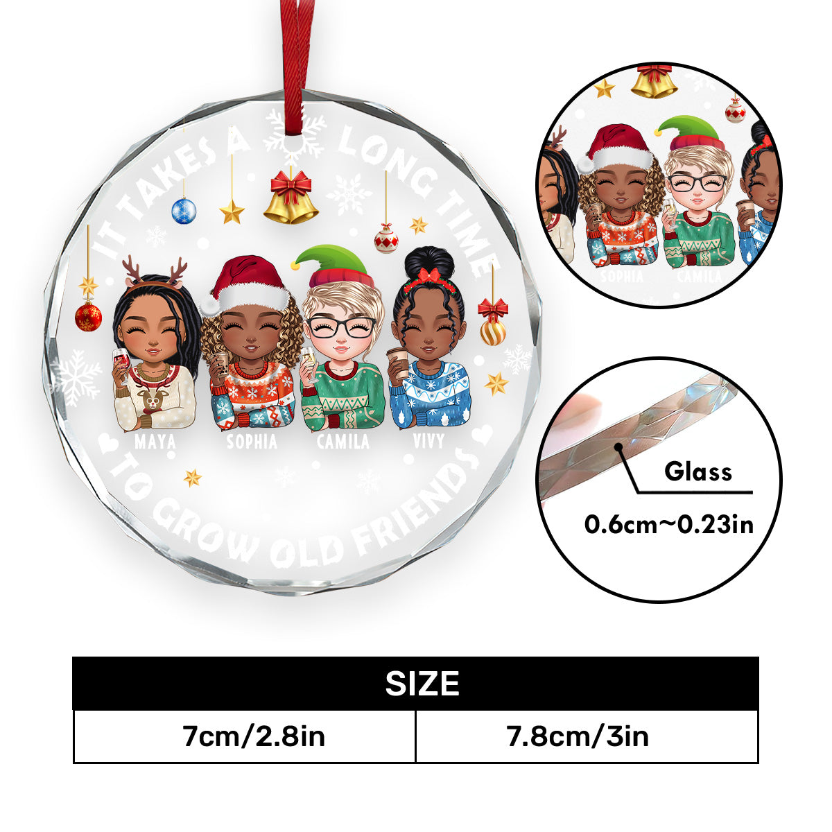 It Takes A Long Time To Grow Old Friends - Personalized Round Glass Ornament