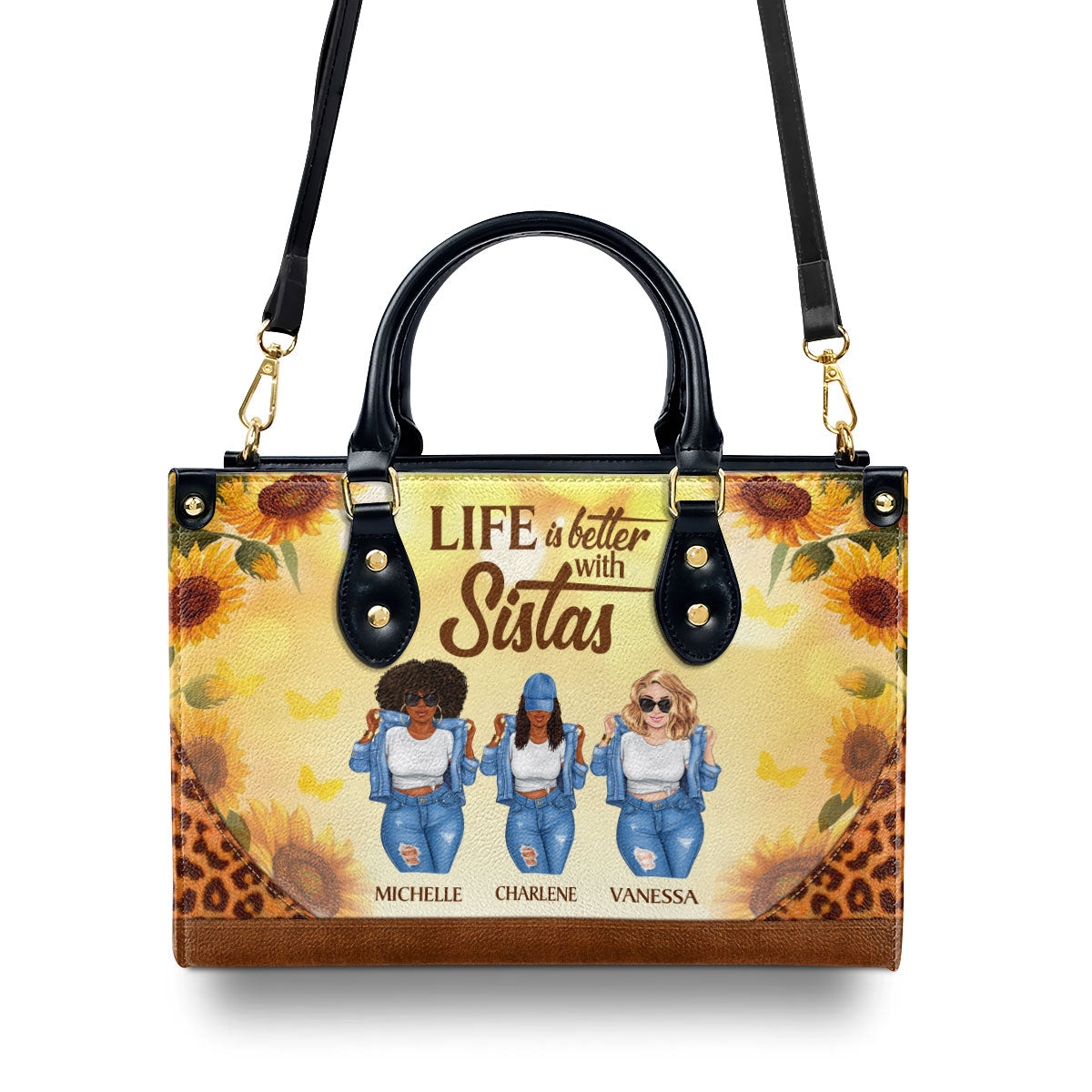 Life Is Better With Sistas - Personalized Leather Handbag STB01A