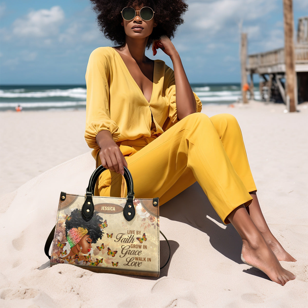 Live By Faith - Personalized Leather Handbag SBLHBLTN1435L