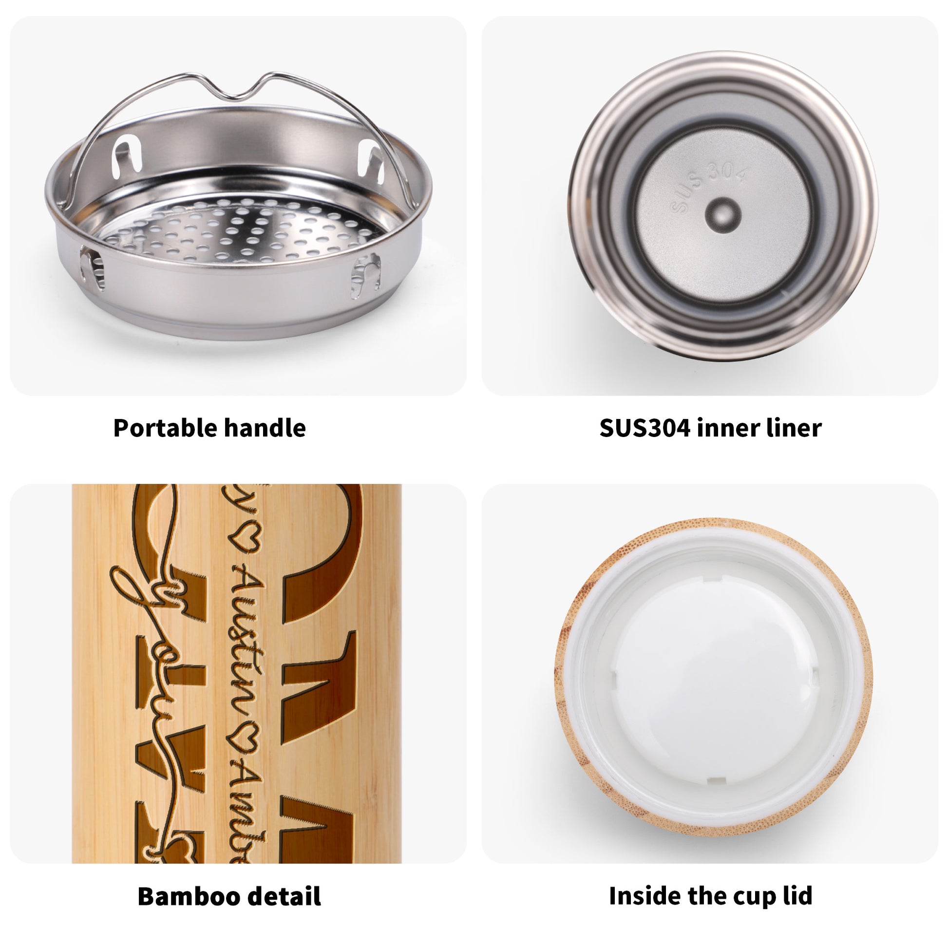 - Material: Made of premium bamboo material to avoid mold. Plastic free with high quality stainless steel recyclable, food safety.