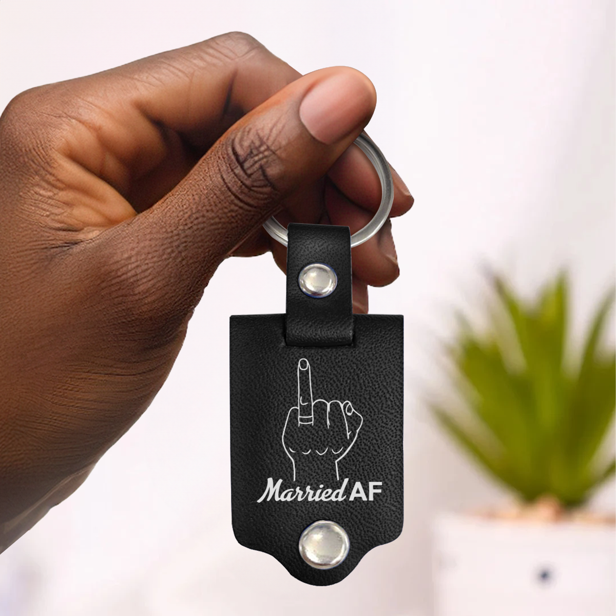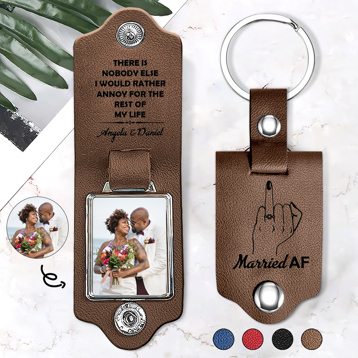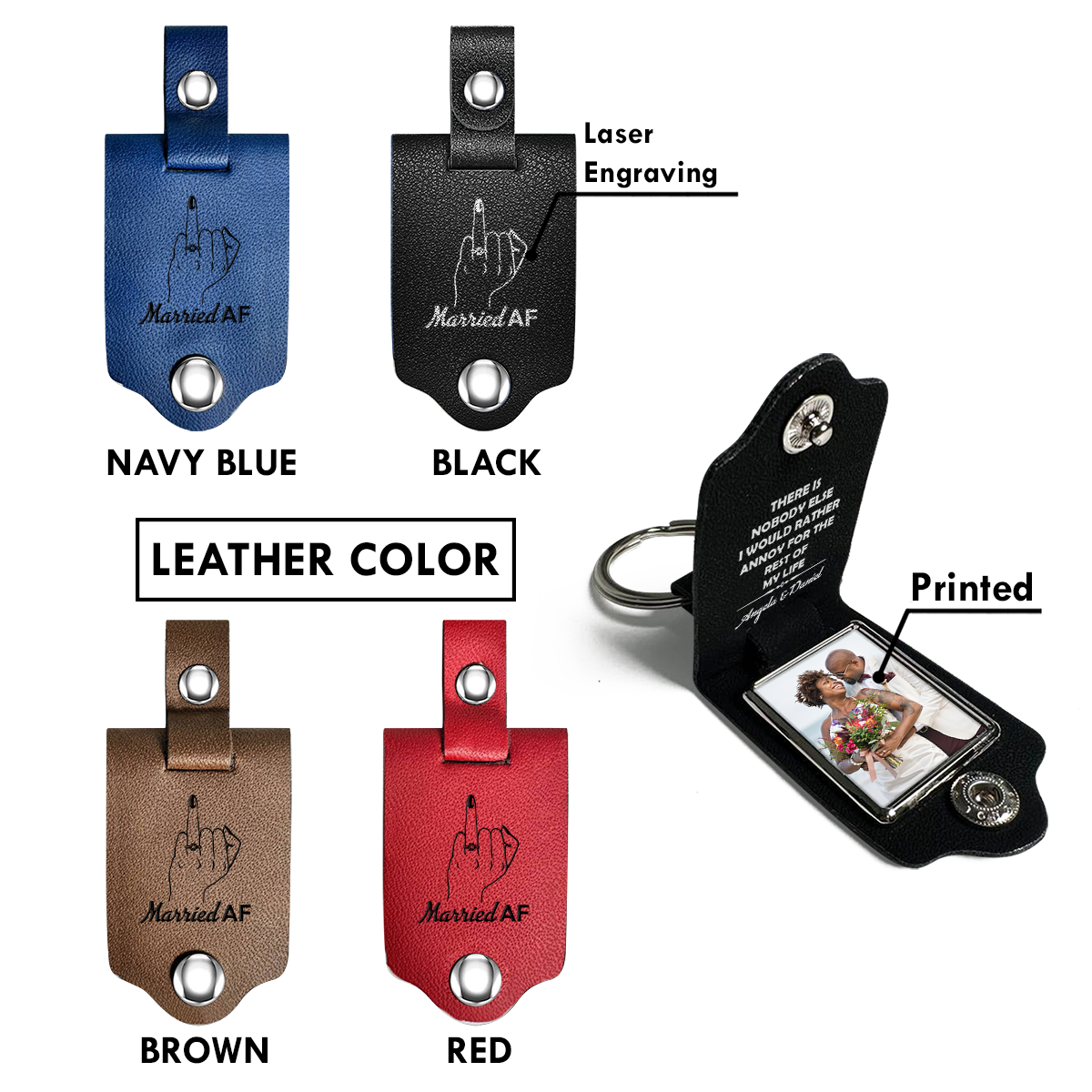 Married AF - Personalized Leather Photo Keychain