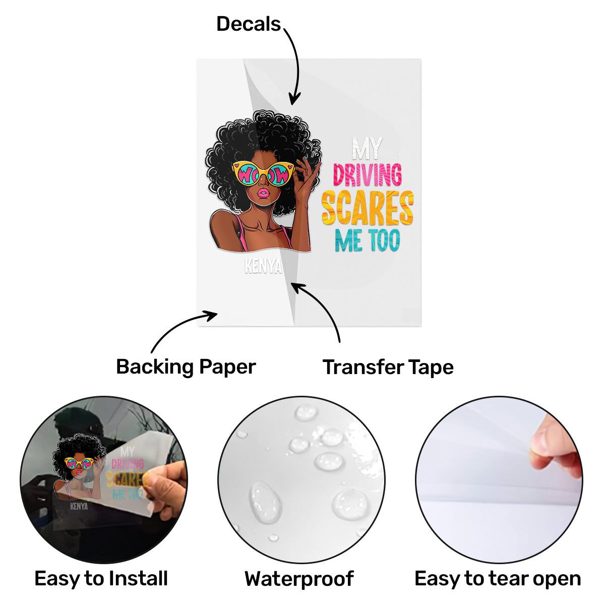 - Premium Material: made of vinyl material and a crystal clear laminate, this sticker is UV-proof, scratch-proof, waterproof & weather resistant. They are 100% non-toxic, making them safe for children, or anyone else. Once applied they look like they are painted on transparent background.