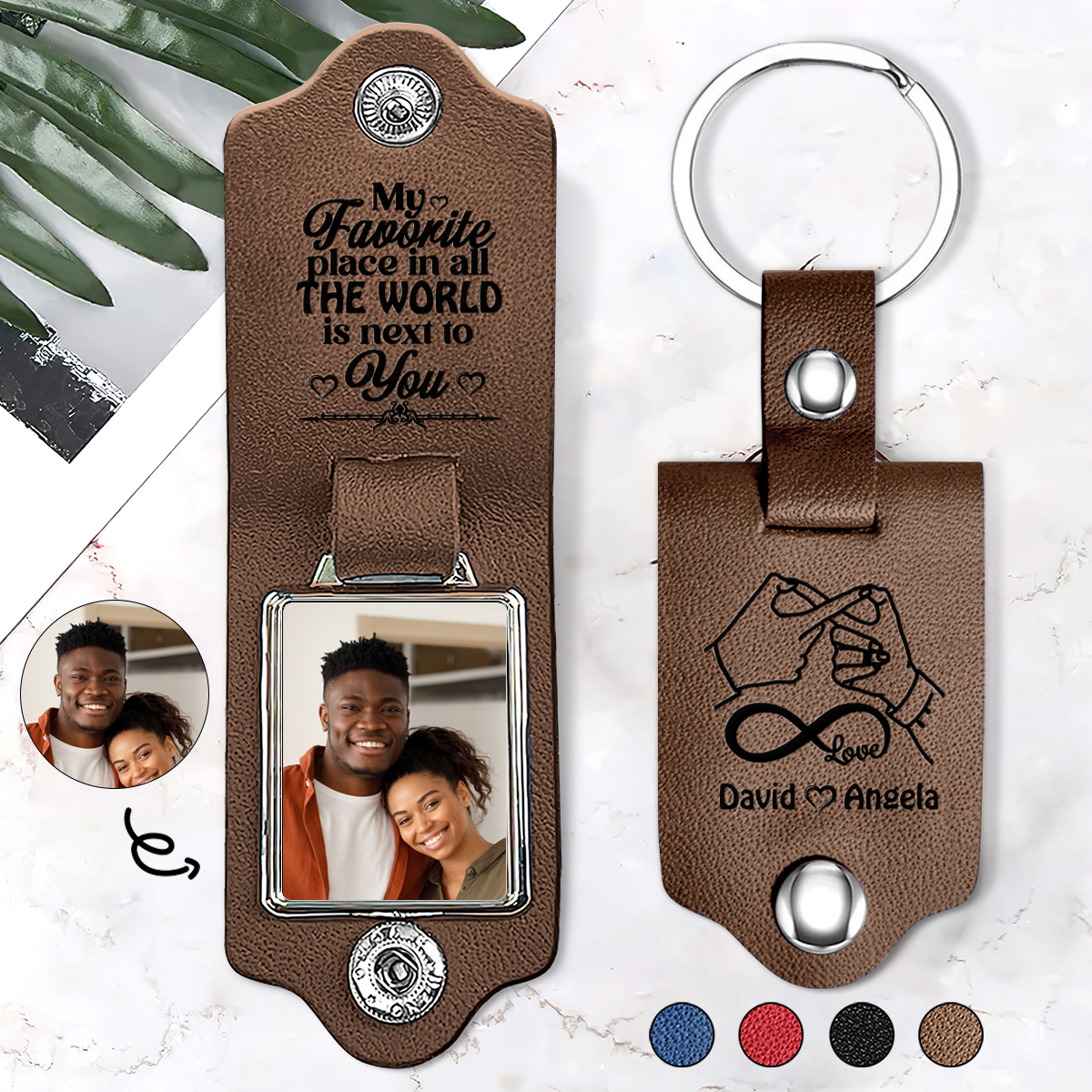 My Favorite Place In All The World Is Next To You - Personalized Leather Photo Keychain SBLPKLM2497M