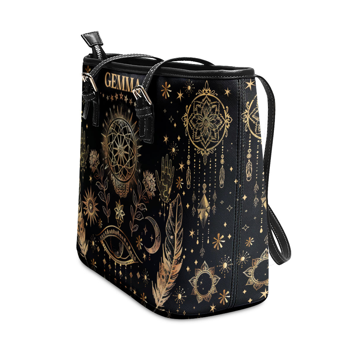 Mystic Moon And Sun - Personalized Leather Totebag SBLTBPN909L