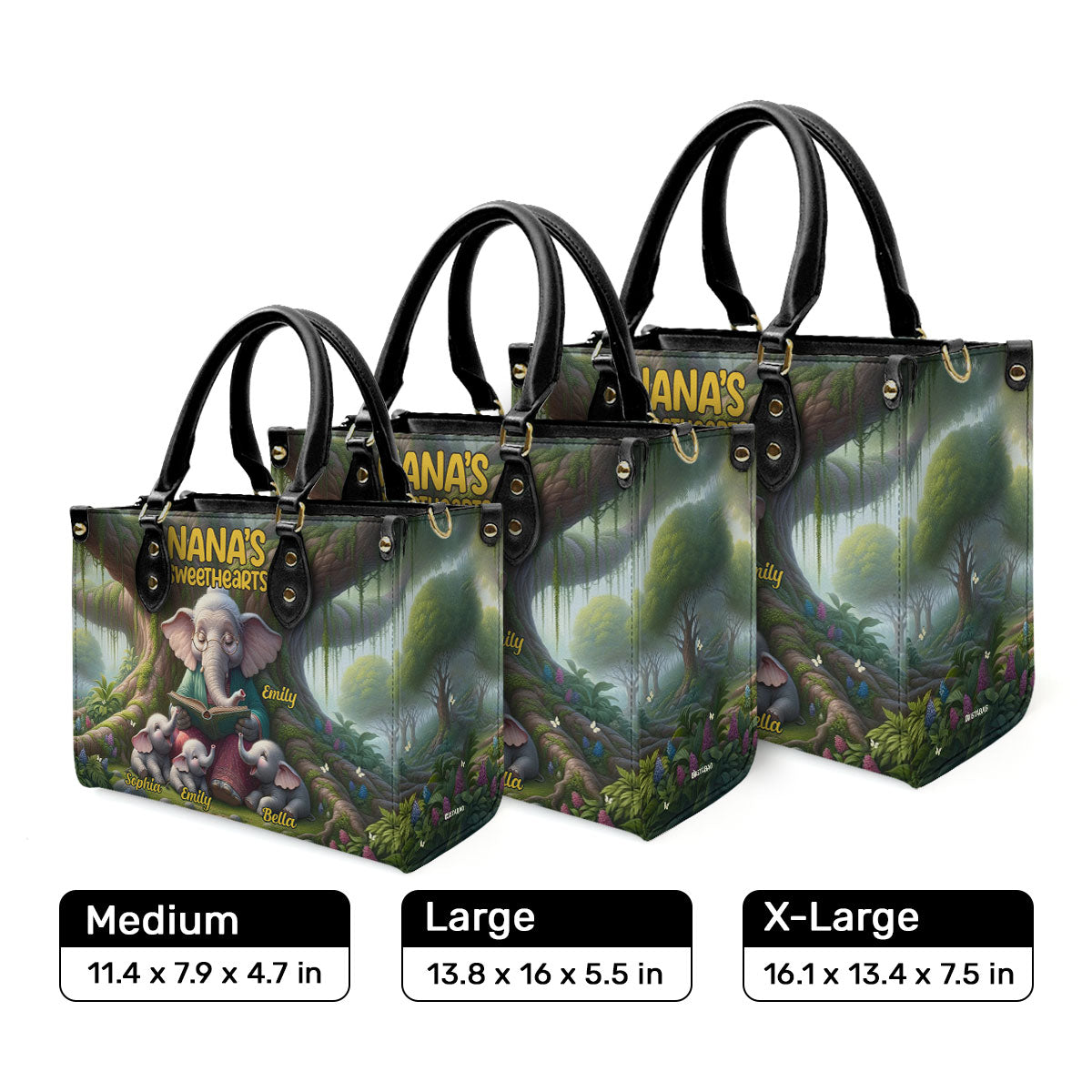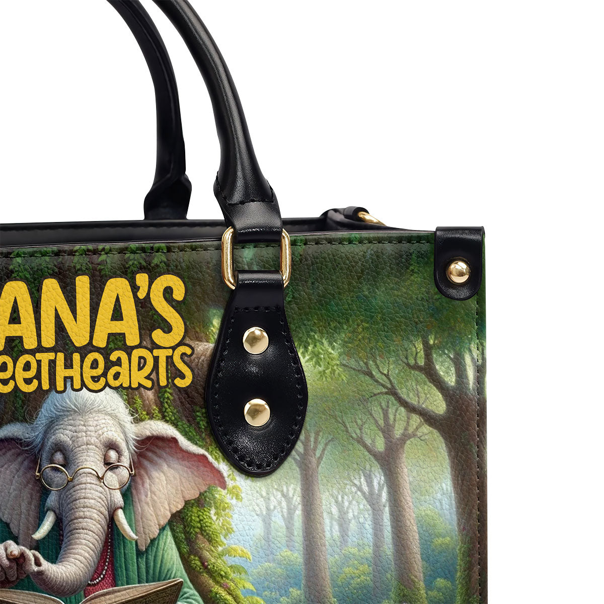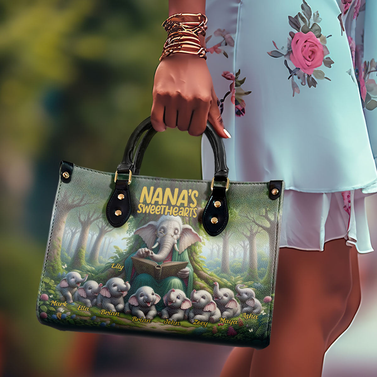 Nana's Sweethearts - Elephants Personalized Leather Handbag STB75
