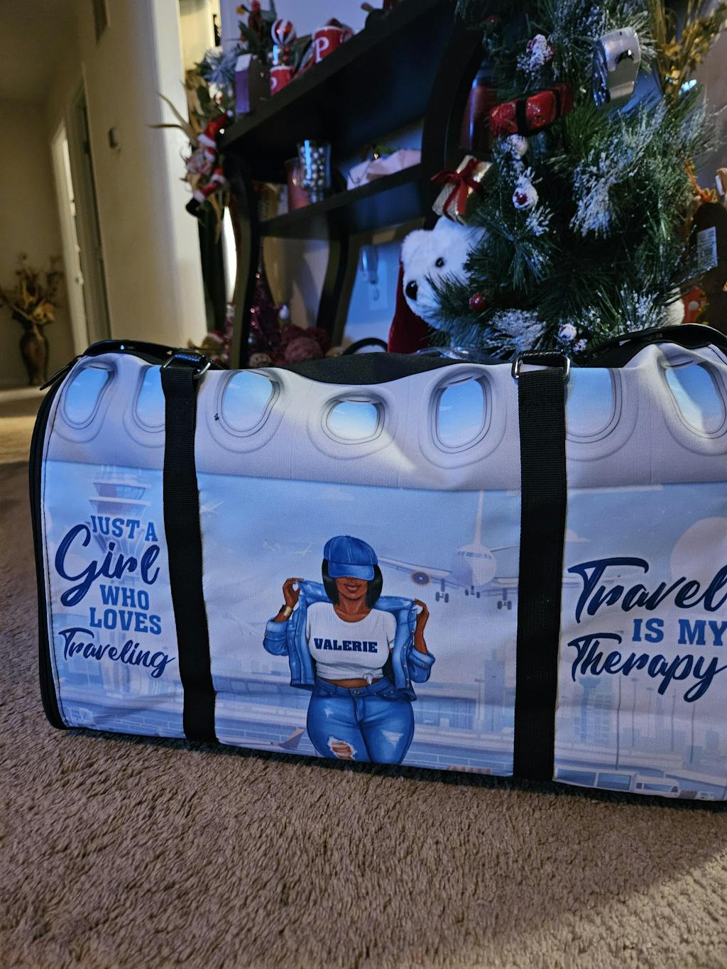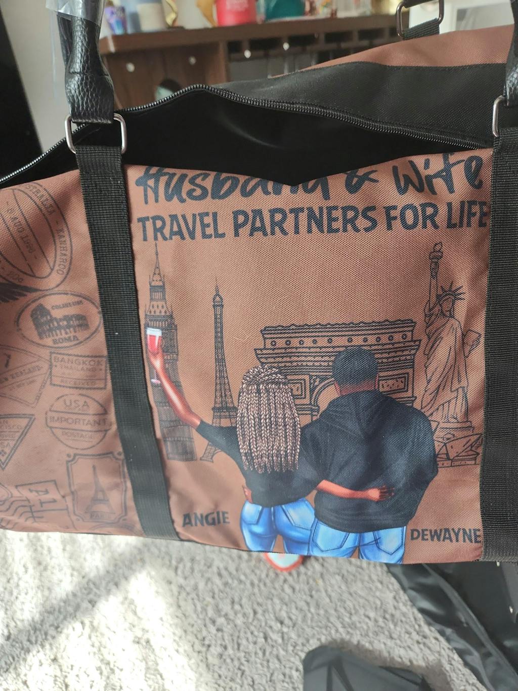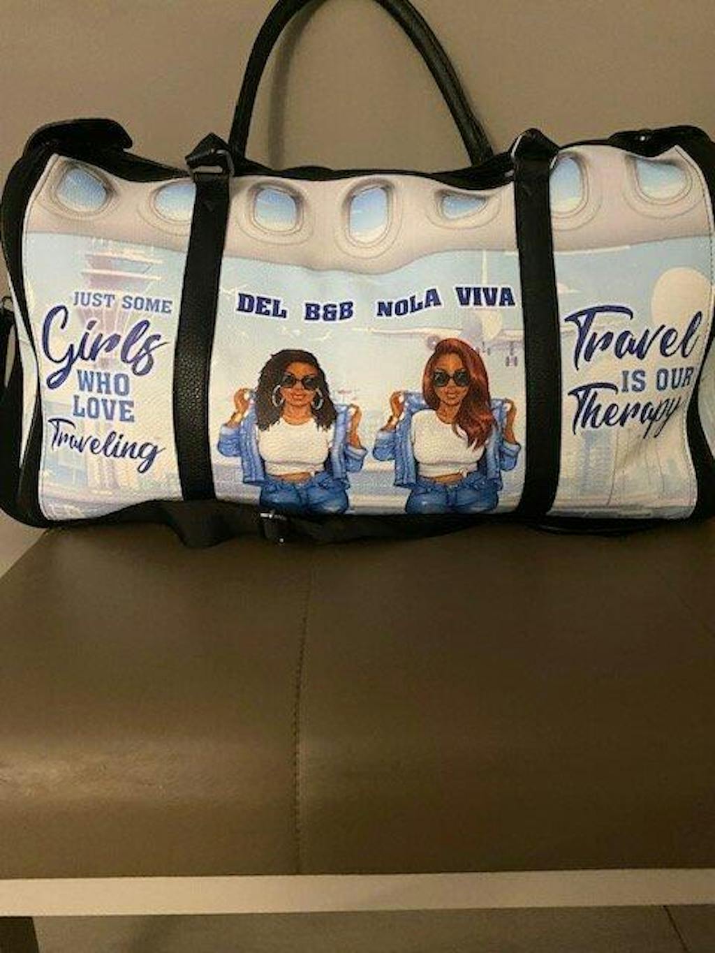 I purchased the duffle bag for my trip with my daughter. I also purchased a backpack for my daughter to surprise her for our mother-daughter trip! Both products arrived timely and are of such great quality!! When my daughter saw my duffle bag, she immediately fell in love with it. She asked, why I didn't buy her one. She was so delighted when I surprised her with the backpack. Both bags were perfect for our trip to Puerto Rico! The duffle bag holds a lot of travel items such as clothes, shoes, etc. It has various pockets inside as well as outside the duffle bag. The exterior is made of high quality material. The imagery on the bag is very clear! I love this bag! My one criticism of the bag is that I wish it had wheels to glide through the airport. But, that doesn't stop me from using it!