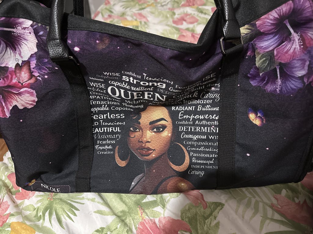 I absolutely love the colors of this bag. I love seeing all the positive inspirational words to describe me. I love how the beautiful black girl is right in the middle of the bag. The only thing I would change is that I wish my name was a lot bigger so that it is more visible, it is so small it is barely noticeable.