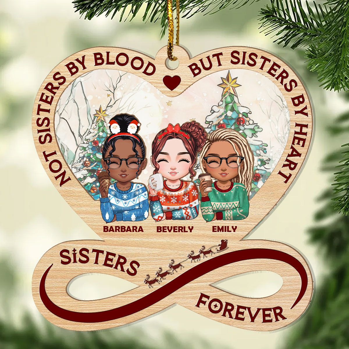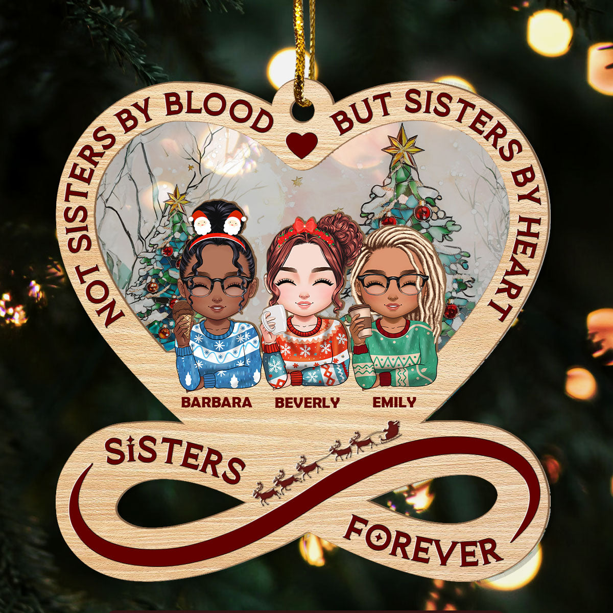 Not Sisters By Blood But Sisters By Heart - Personalized Suncatcher Ornament