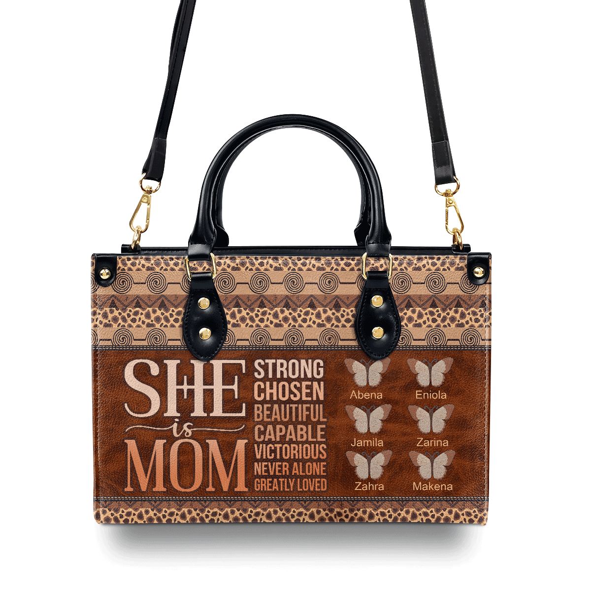 She Is Mom Butterfly - Personalized Leather Handbag SBLHBLM1420D