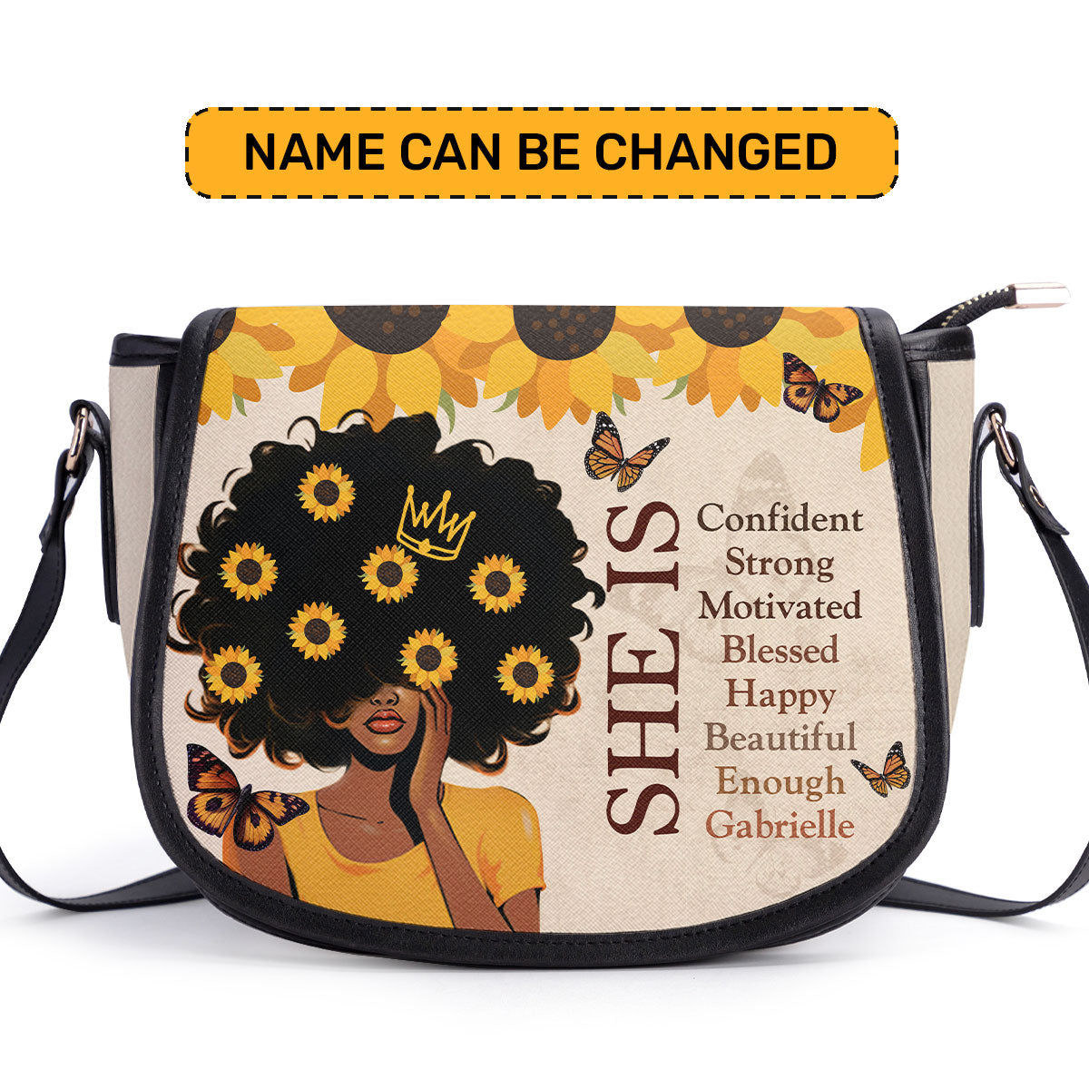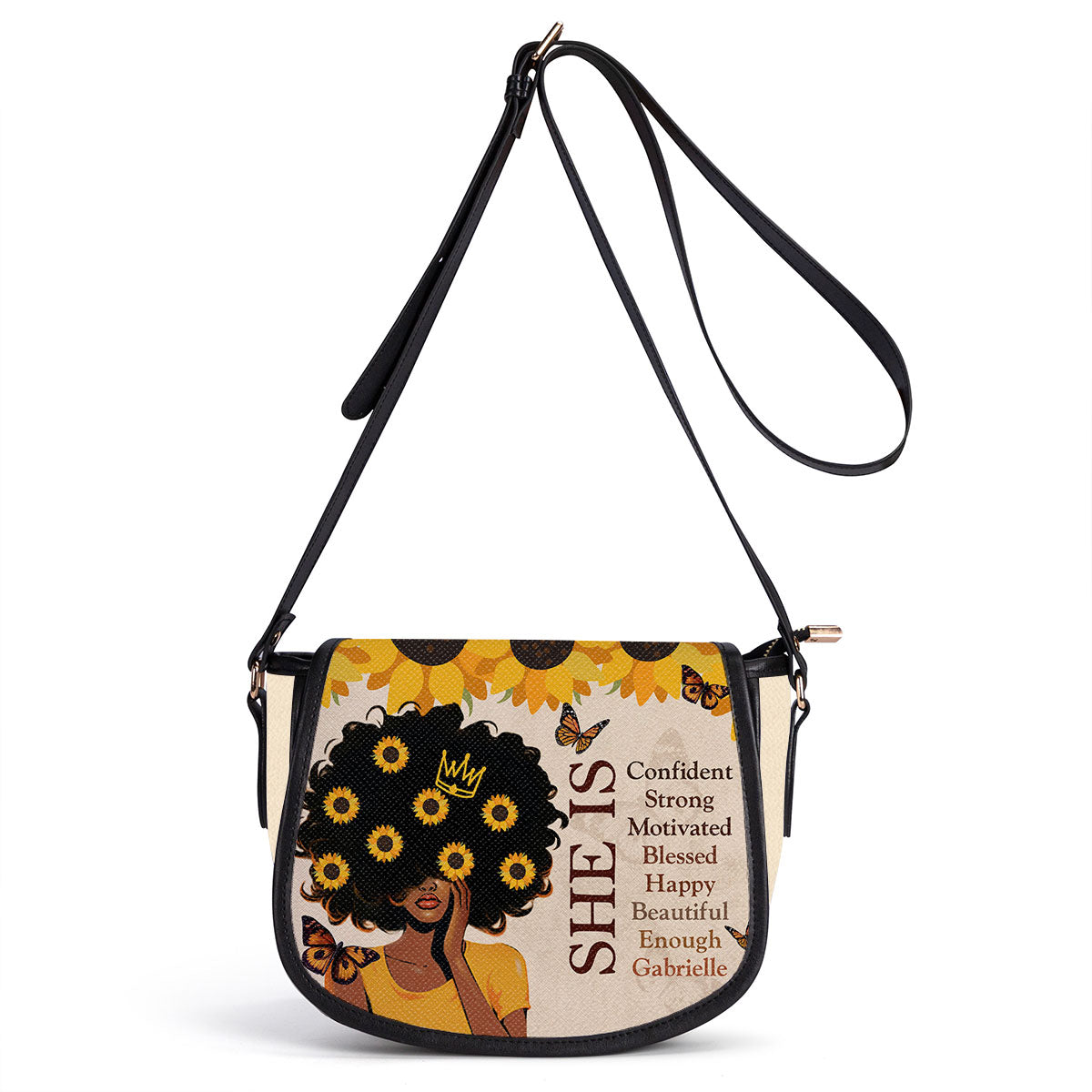 She Is - Personalized Leather Saddle Cross Body Bag SB12
