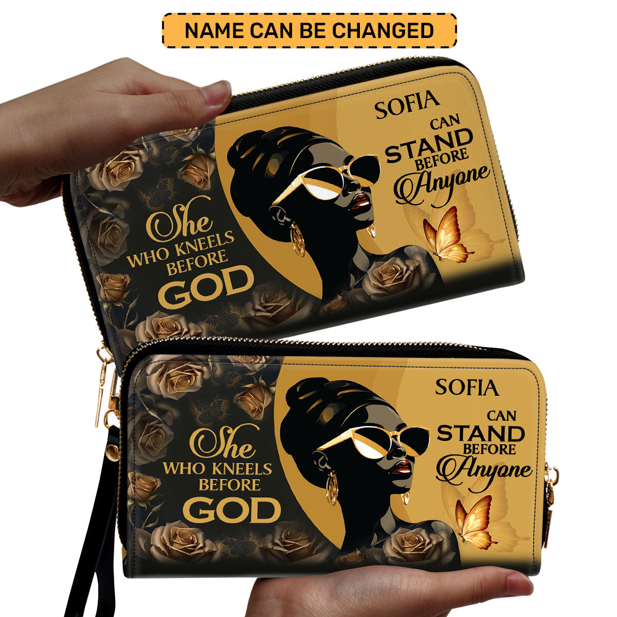 She Who Kneels Before God Can Stand Before Anyone - Personalized Leather Clutch Purse STB10