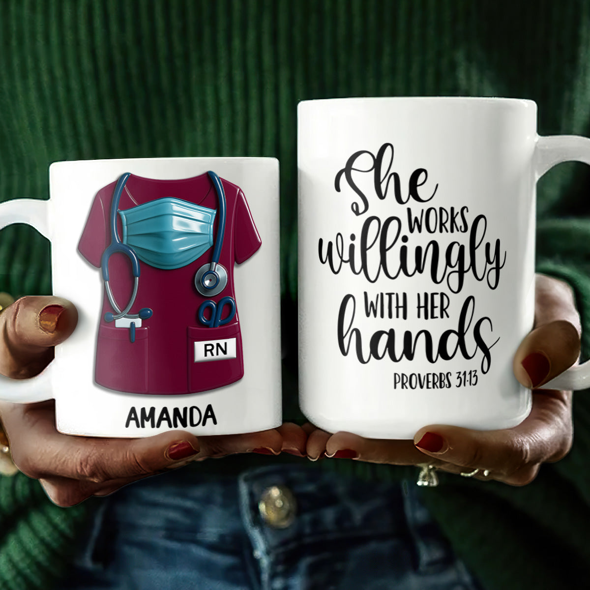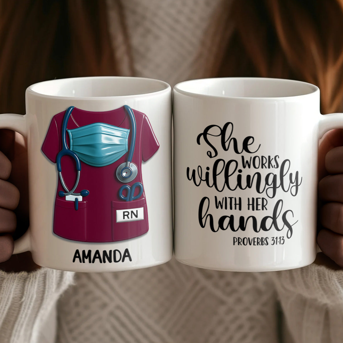 She Works Willingly With Her Hands - Personalized Ceramic Coffee Mug