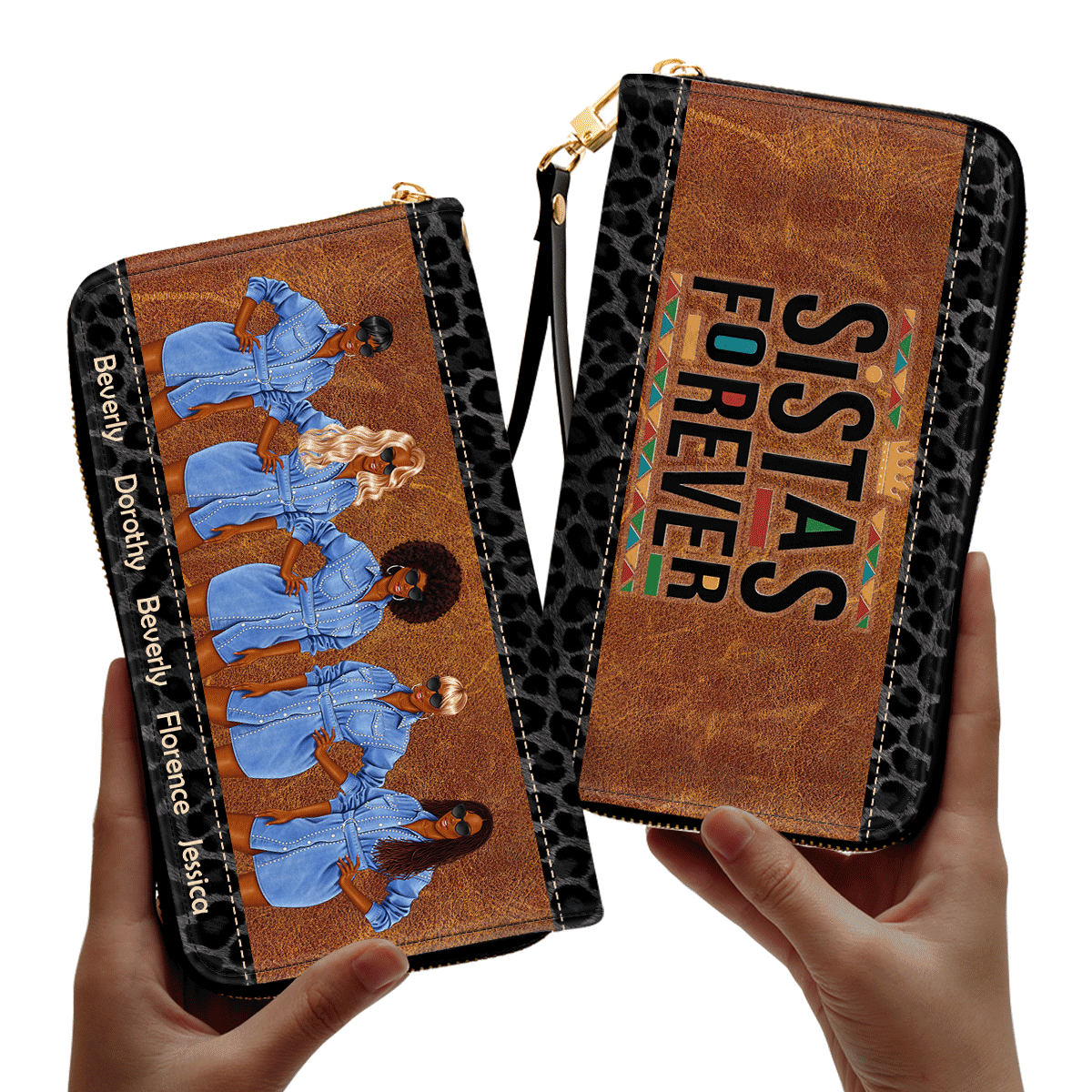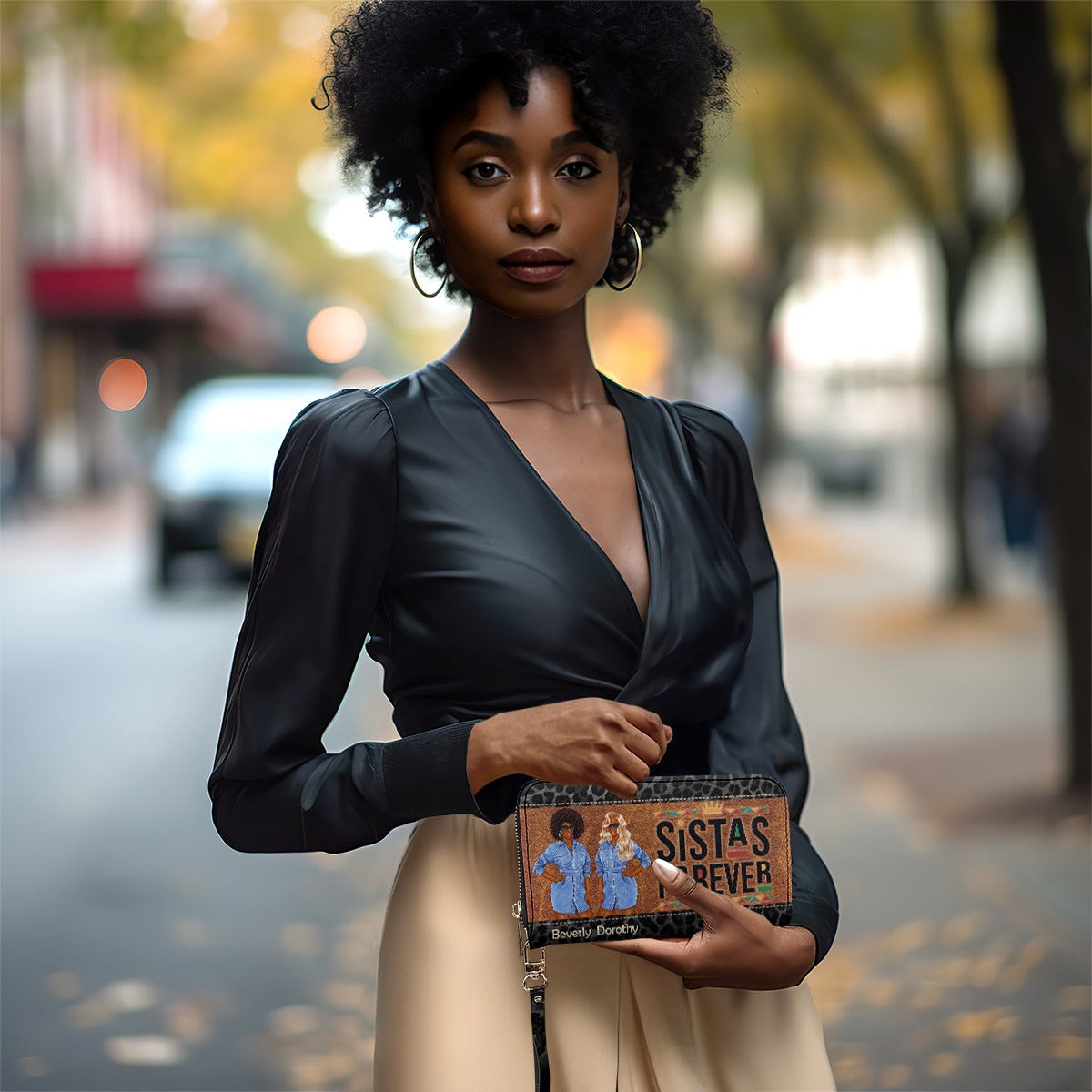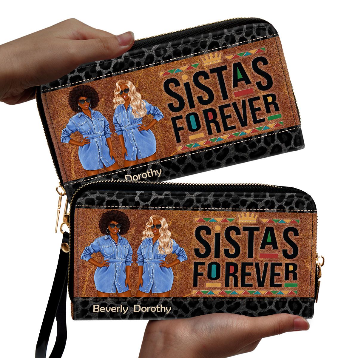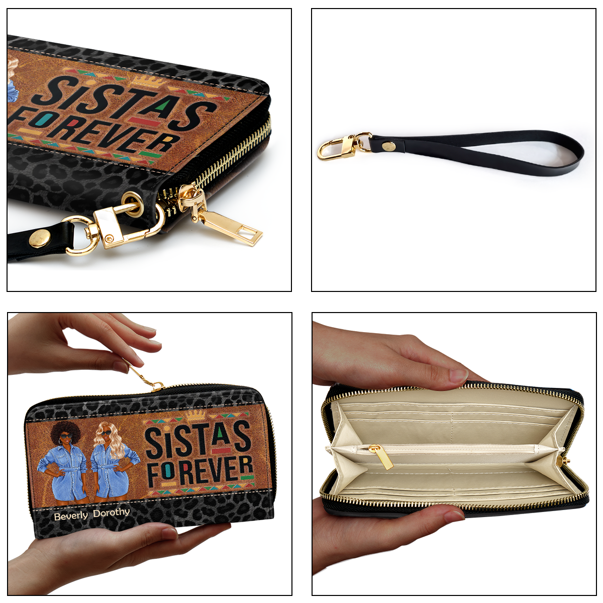 Sistas Forever - Personalized Leather Clutch Purse SBCPLM2485M