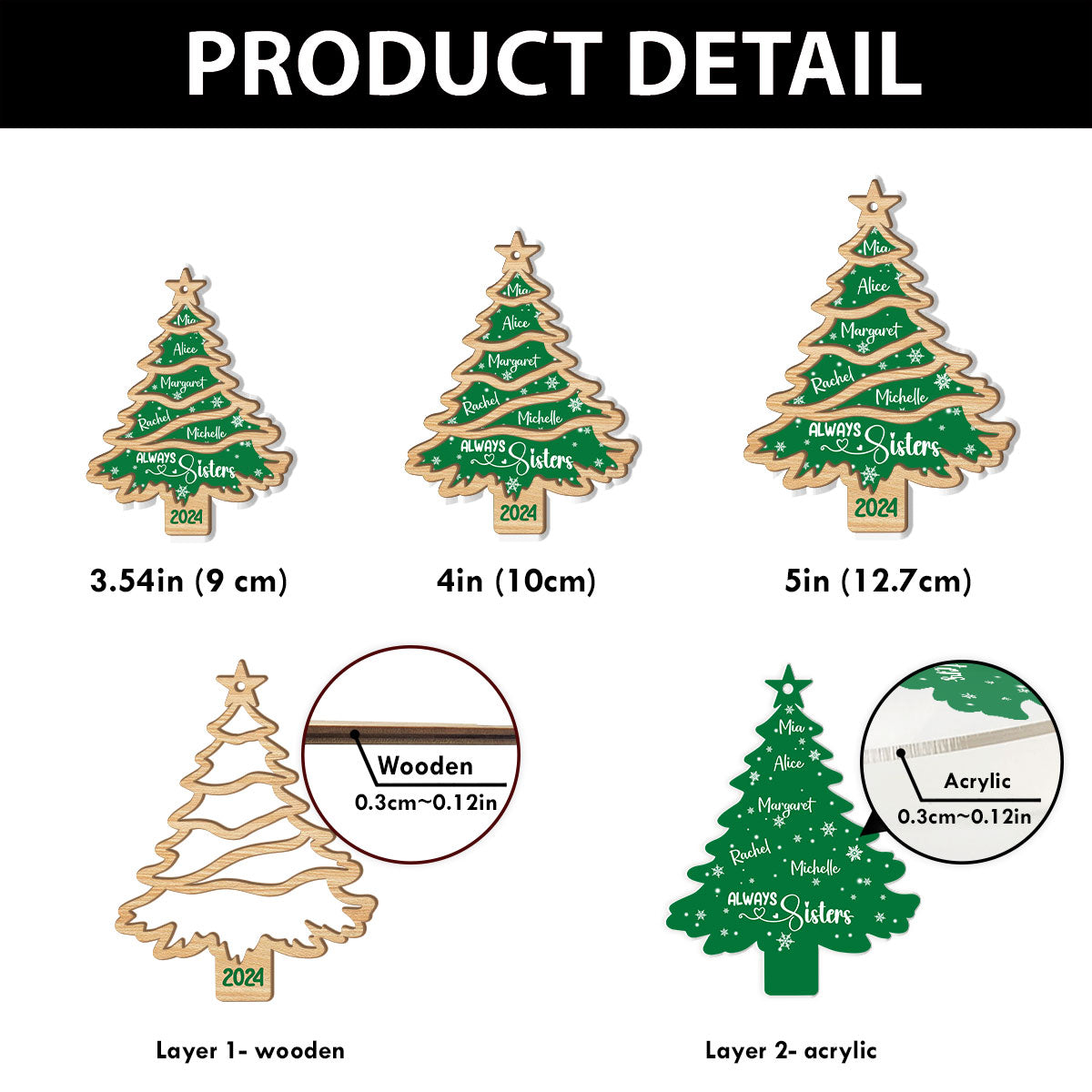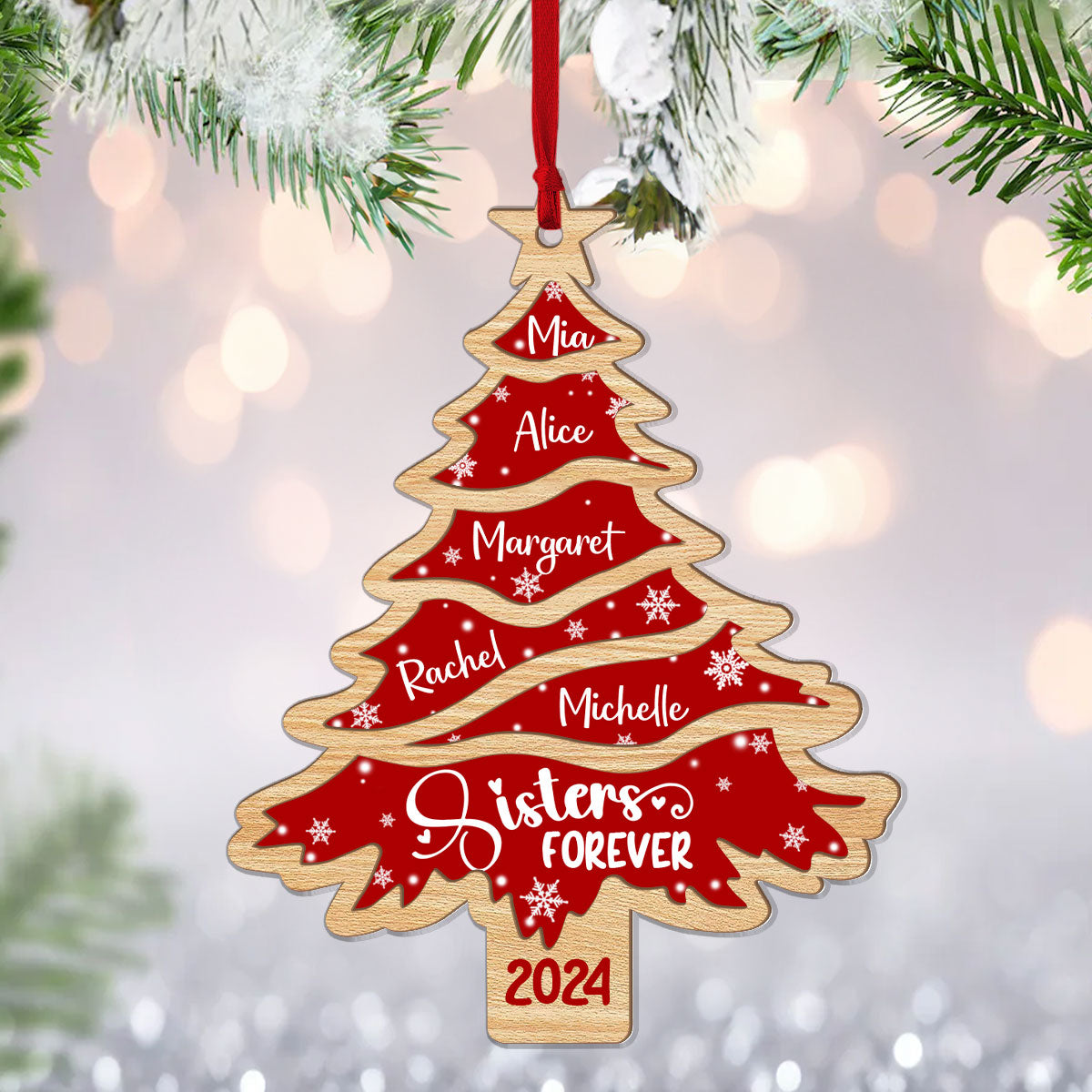 Sisters Forever Christmas Tree - Personalized Wood & Acrylic Ornament