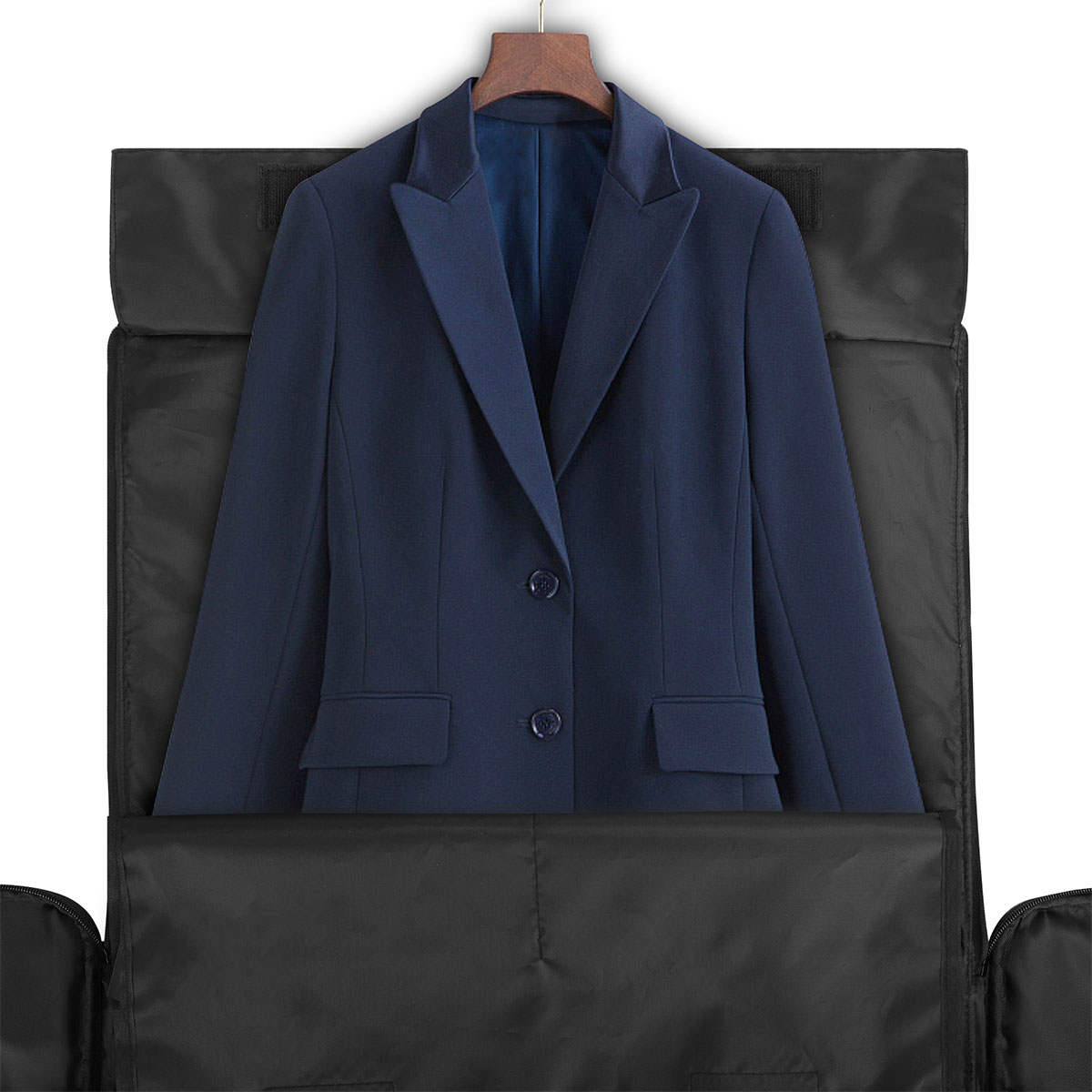 - Stay organized with 1 zippered pocket for belts or ties, 2 storage bags, a hanger lanyard and a big garment compartment.