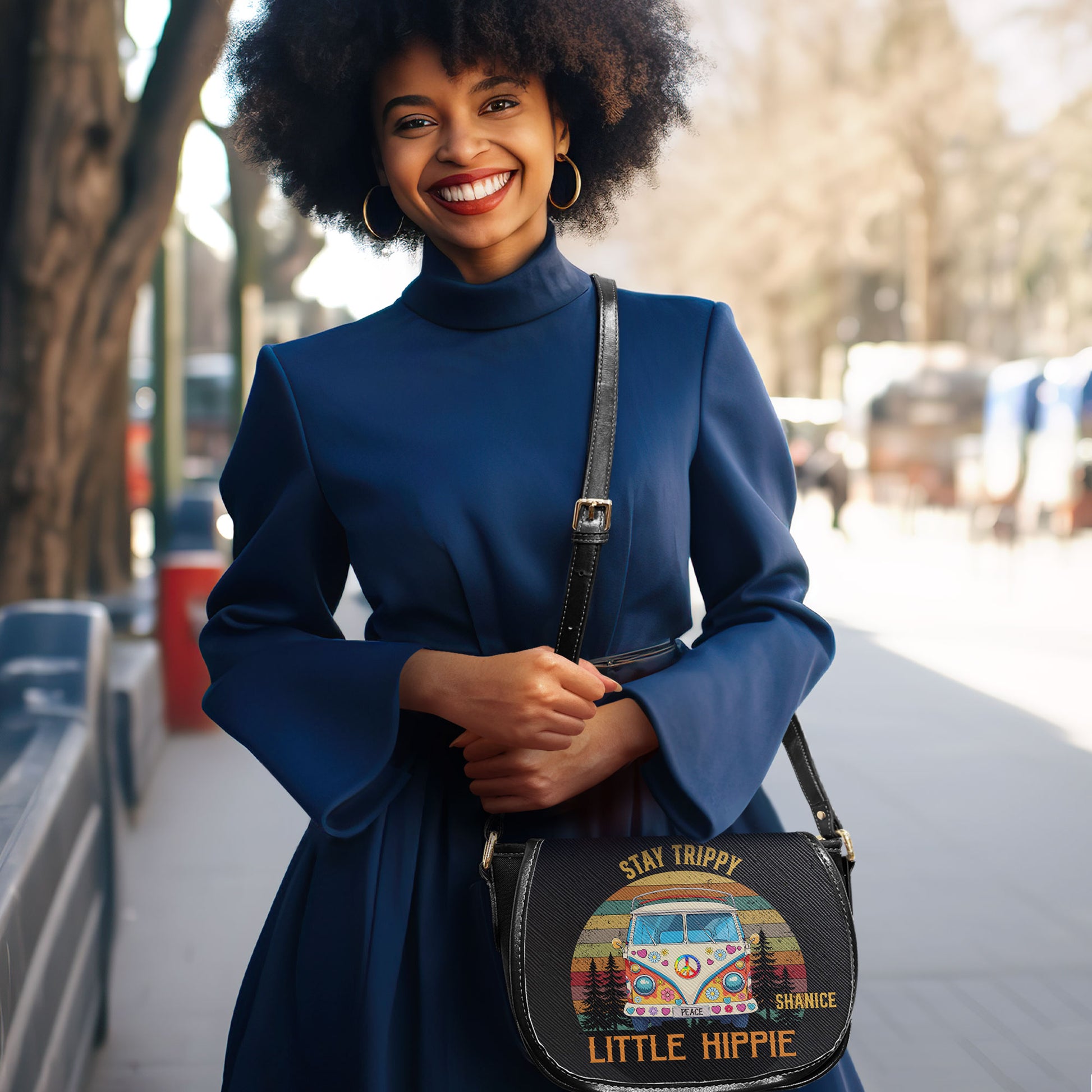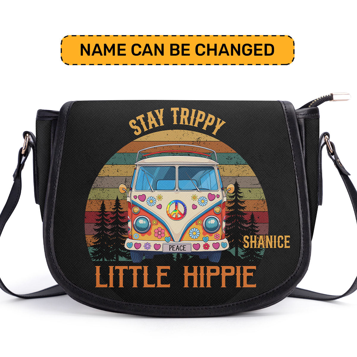 Stay Trippy Little Hippie - Personalized Leather Saddle Cross Body Bag SBHN13