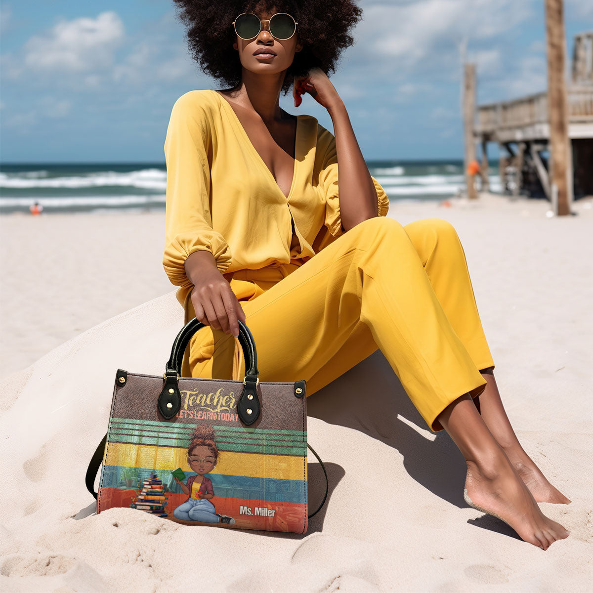 Teacher Let's Learn Today - Personalized Leather Handbag SBLHBLM1000D