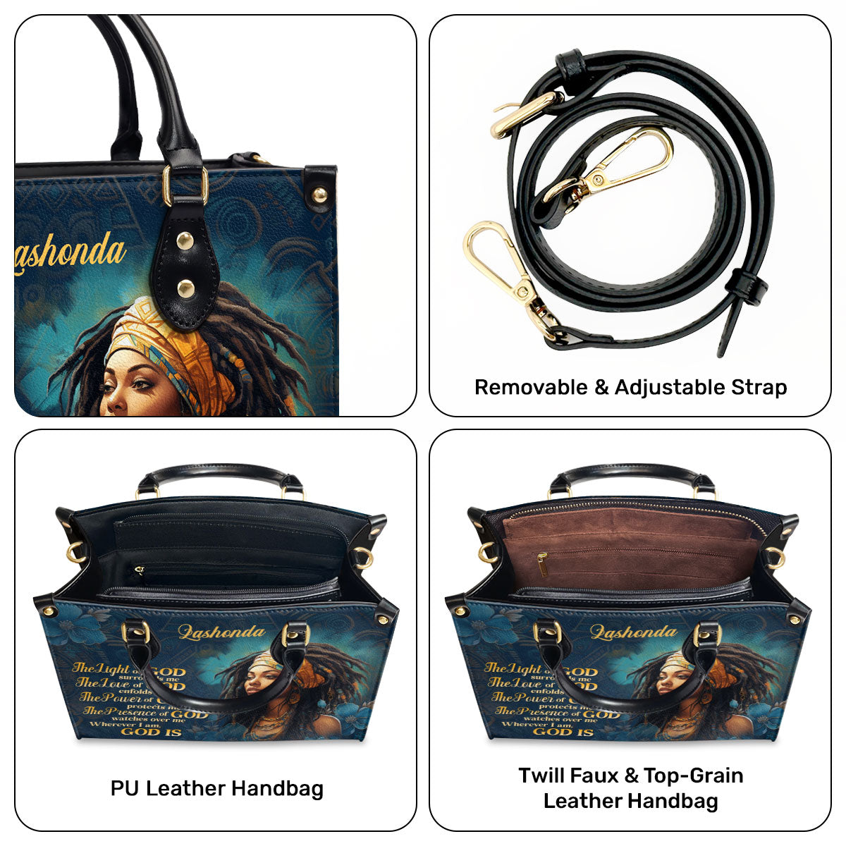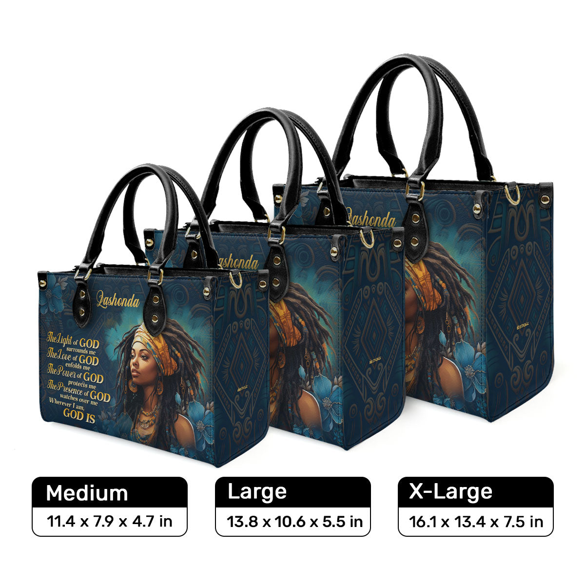 The Light Of God Surrounds Me - Personalized Purple Leather Handbag STB173