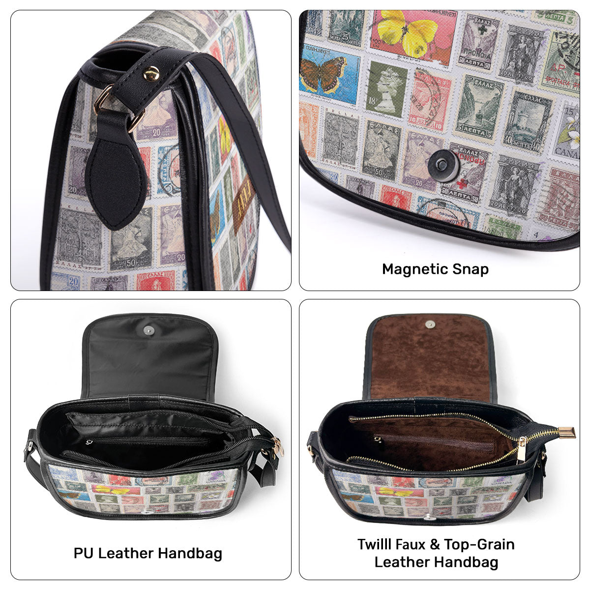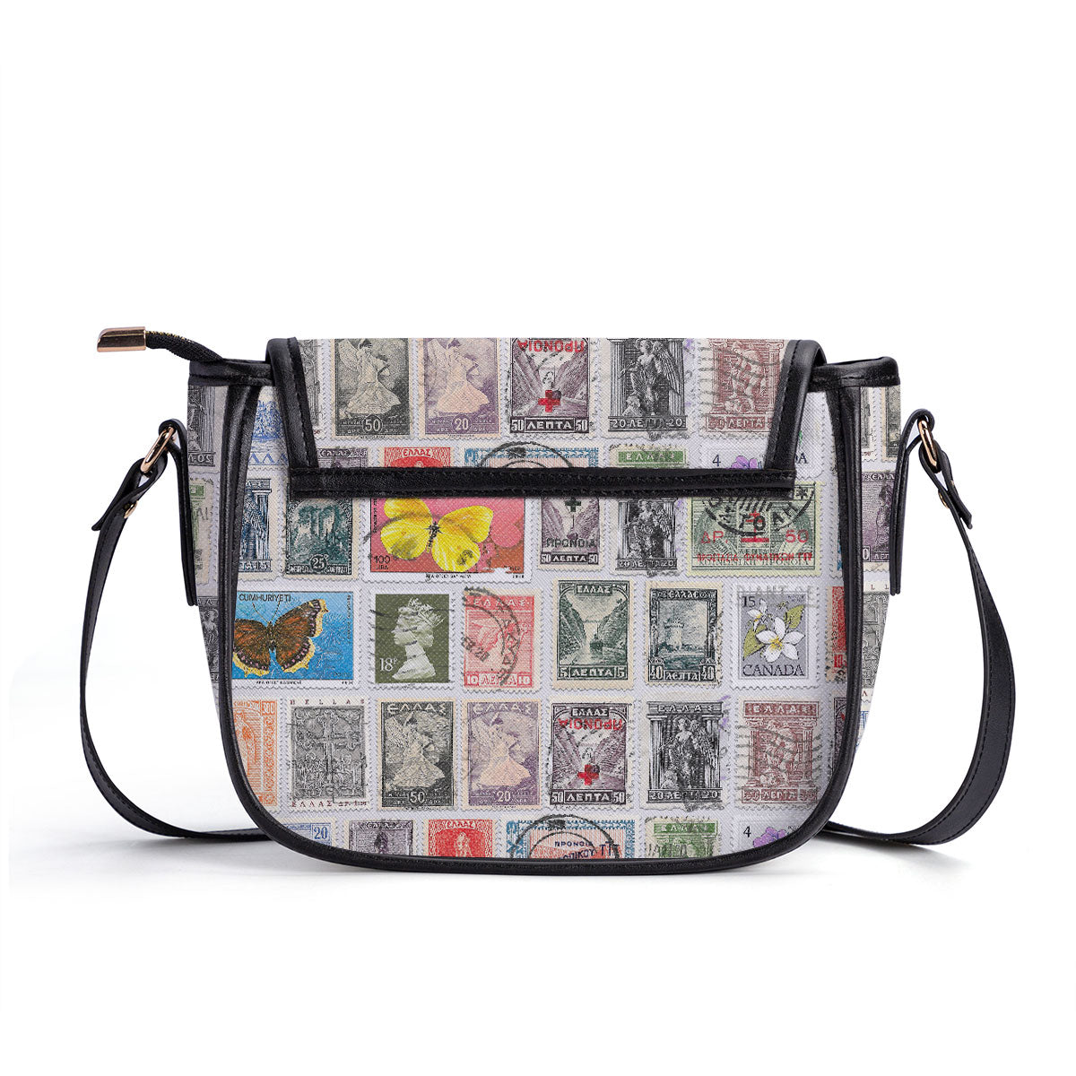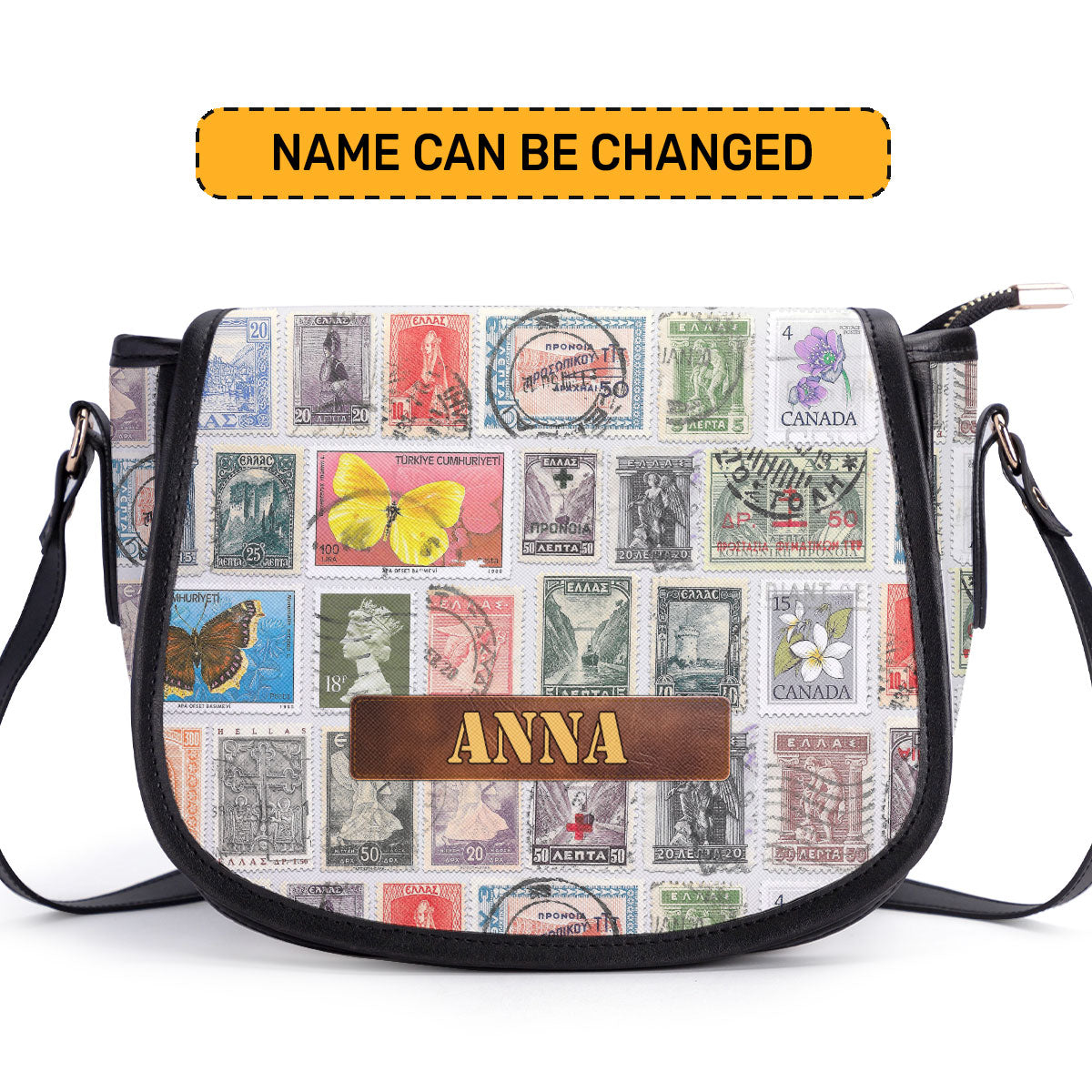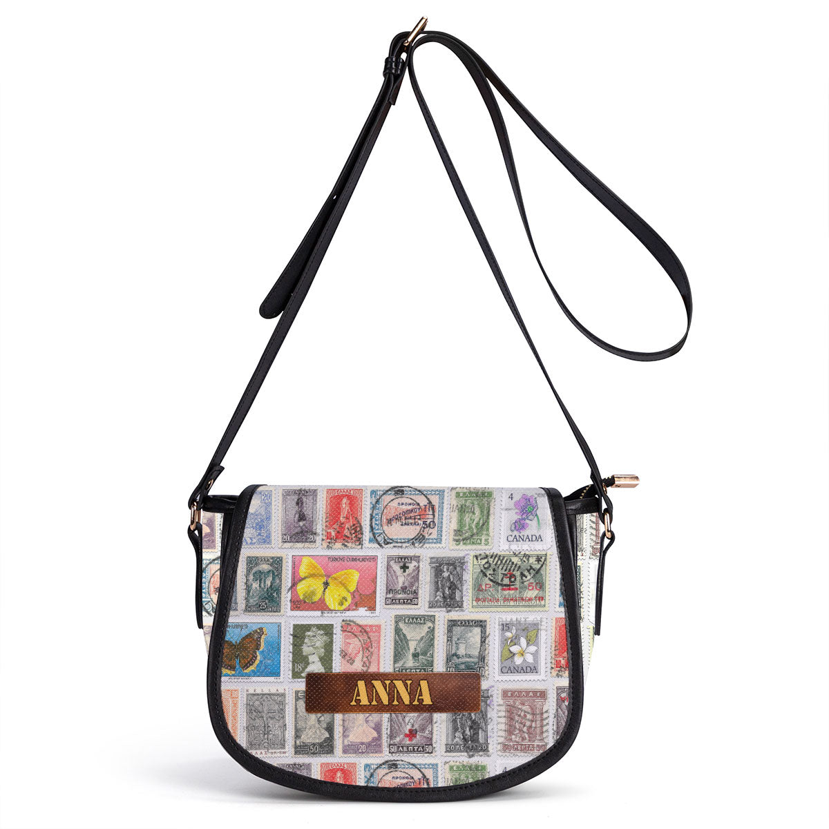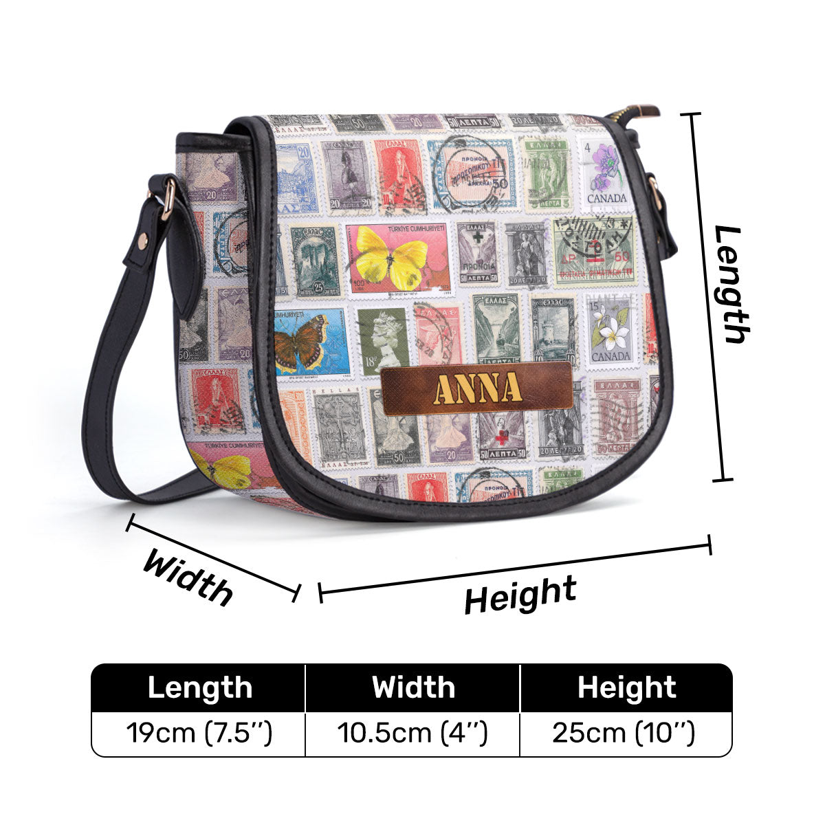 Vintage Postage Stamp - Personalized Leather Saddle Cross Body Bag SBLSDBT70