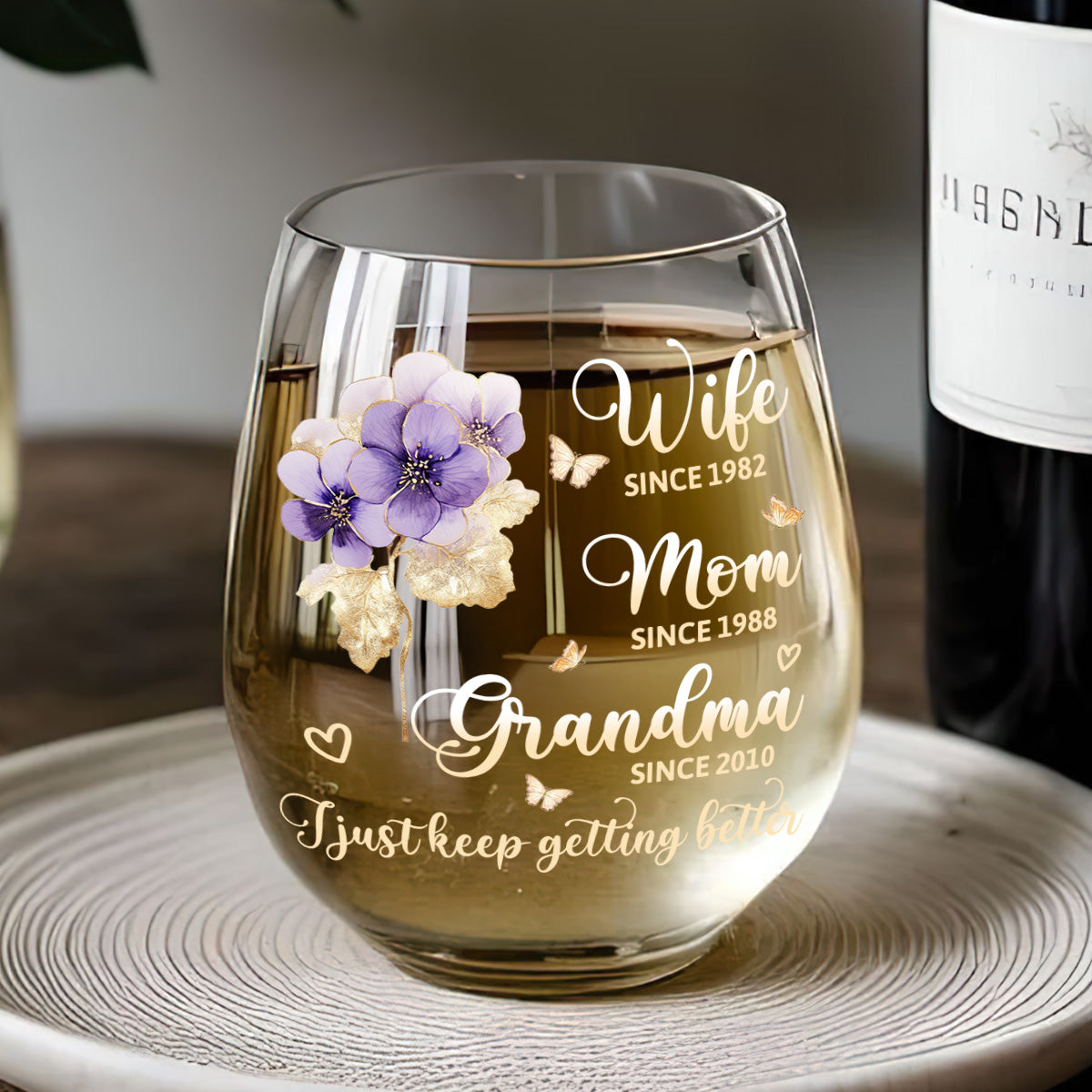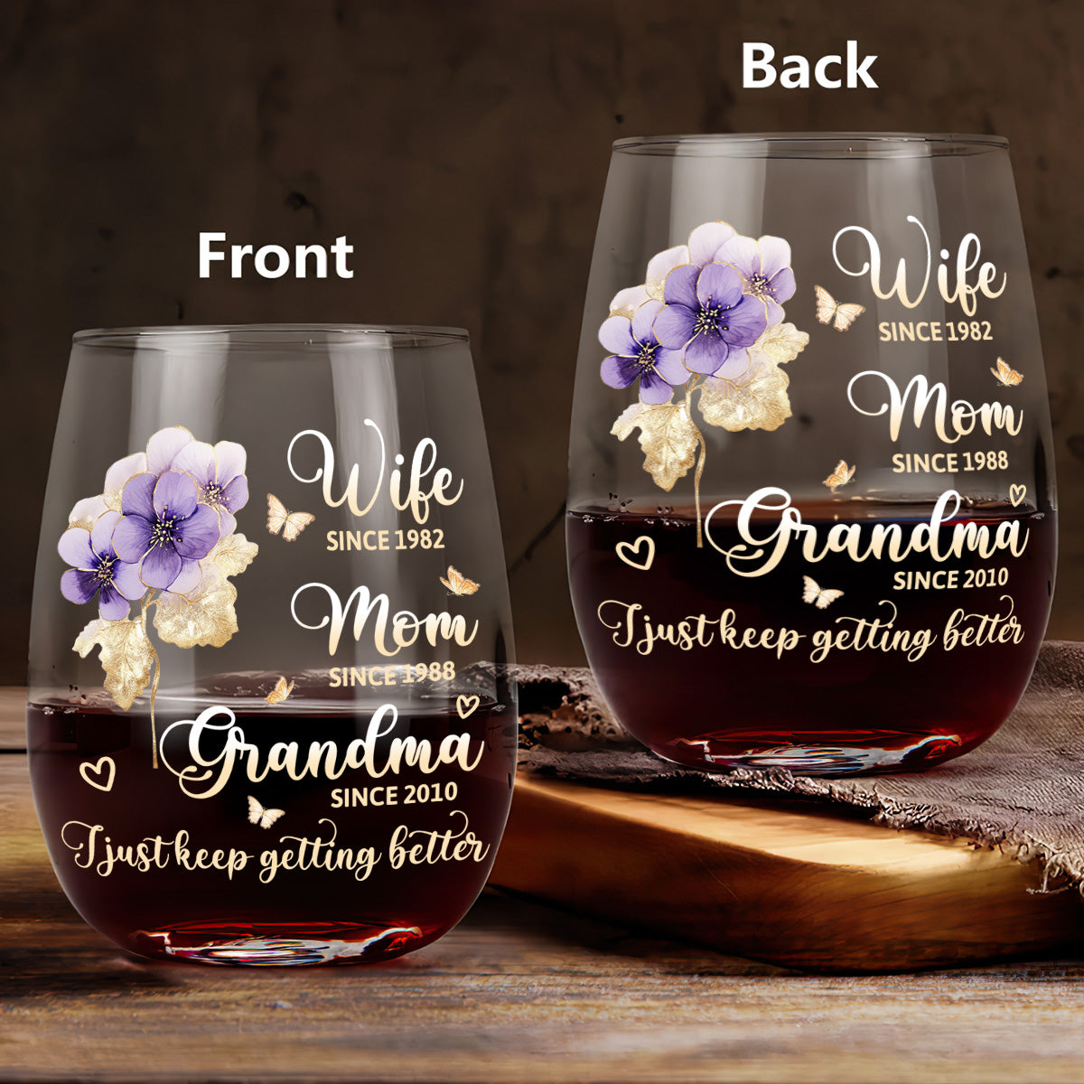 I Just Keep Getting Better - Personalized Stemless Wine Glass