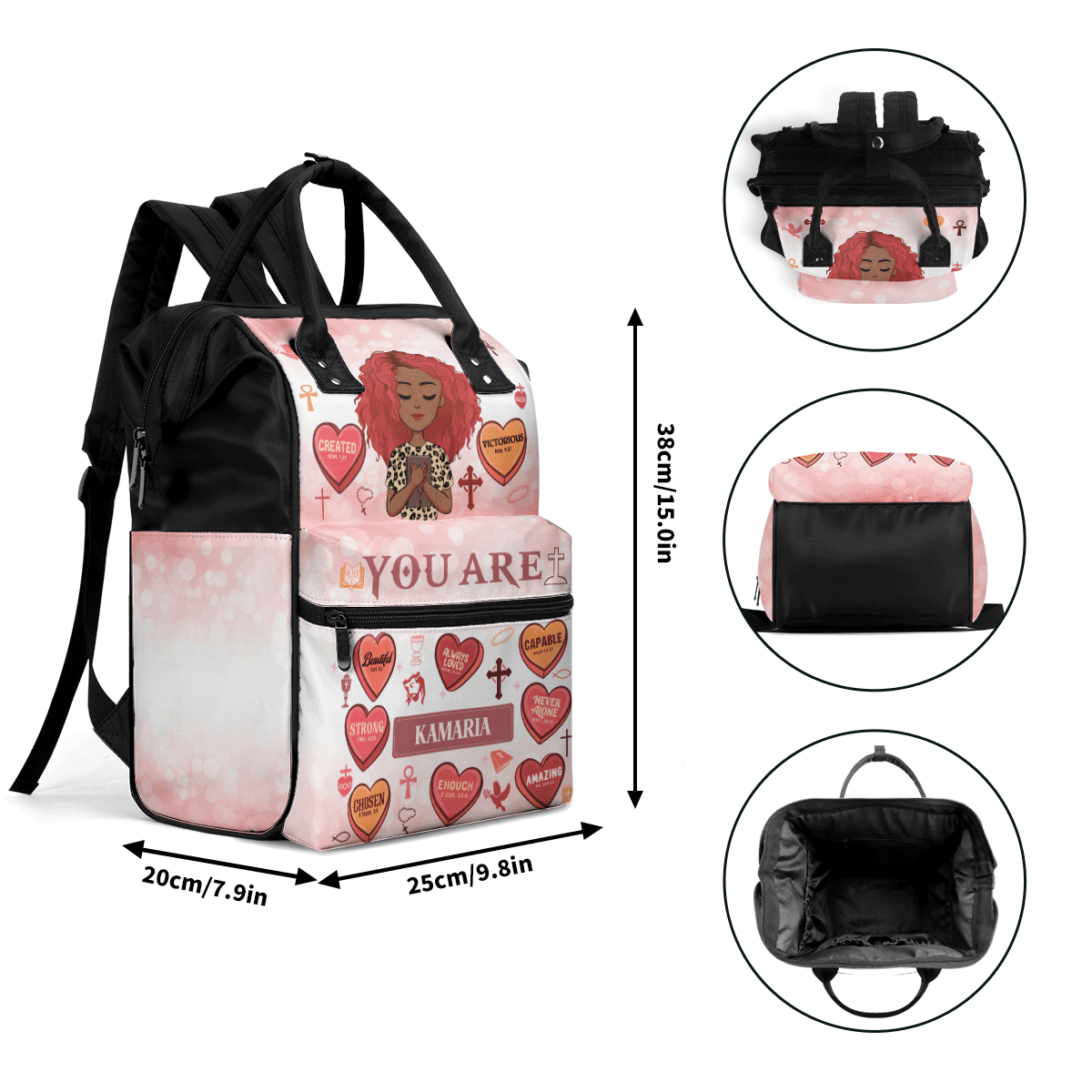 Bought this backpack for my 11 year old ands she loves it!! She said my teacher said she likes my bag and a lot of her friends. It’s so spacious with many compartments, she’s able to carry her school things as well as her lunch bag and 32oz water bottle on the inside! ALL WHILE BEING AFFIRMED BY SCRIPTURE EVERY TIME SHE’S LOOKS AT IT ❤️I give it a 10 out of 10, I say if you’re in the fence get off and get yours!!